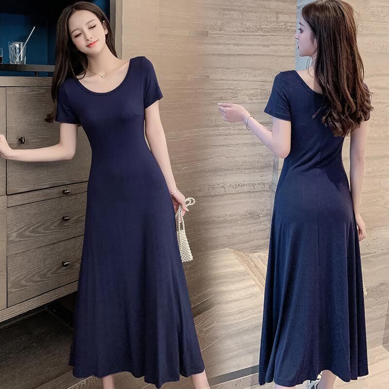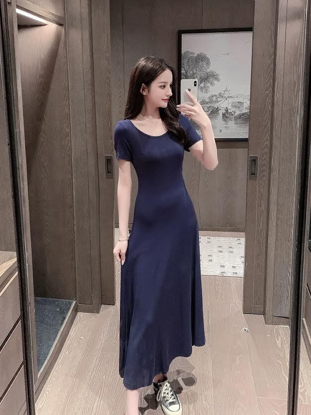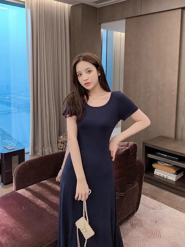 ワンピース ロング丈 袖あり 半袖 ラウンドネック 襟なし スリム 細身 Aライン プルオーバー 薄手 大人可愛い きれいめ シンプル カジュアル 大人 上品 お洒落 かっこいい レトロ 大人可愛い 大人女子 こなれ感 ラフ クール モード系 エレガント モダン 主役級 存在感 とろみ感 抜け感 無地 夏 20代 30代 40代 レディース デート お出かけ 女子会 お泊まり 休日 レストラン ショッピング 普段使い 韓国系 オルチャン トレンド 流行 S M L XL 2XL 3XL ブラック ネイビー