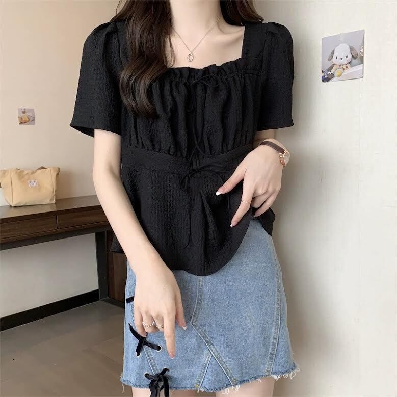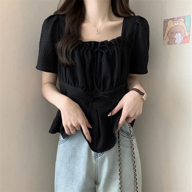 トップス シャツ レギュラー丈 袖あり 半袖 スクエアネック 襟なし スリム 細身 プルオーバー 薄手 大人可愛い きれいめ シンプル カジュアル 大人 上品 お洒落 かっこいい レトロ 大人可愛い 大人女子 こなれ感 ラフ ラブリー キュート ガーリー エレガント 主役級 存在感 とろみ感 抜け感 無地 夏 10代 20代 30代 レディース デート お出かけ 女子会 お泊まり アウトドア 旅行 ショッピング 普段使い 韓国 韓国系 オルチャン トレンド 流行 L XL 2XL 3XL 4XL ブラック