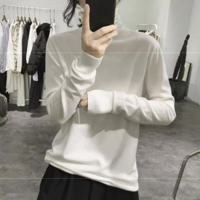 レディース トップス ニット セーター プルオーバー 長袖 ハイネック スリム 細身 ストレート かわいい 大人可愛い きれいめ シンプル カジュアル 上品 おしゃれ かっこいい こなれ感 ラフ ガーリー クール エレガント とろみ感 ベーシック 無地 秋 冬 ママ 通勤 学生 学校 通学 デート お出かけ 女子会 ショッピング カフェ お揃い 韓国 コーデ 楽ちん 体型カバー 普段使い 着回し モテ トレンド 流行 インスタ映え S M L XL ホワイト ブラック グレー ブルー アプリコット