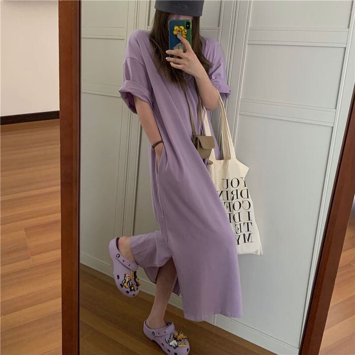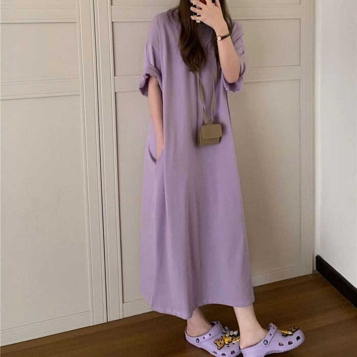 ワンピース Tシャツワンピース ロングワンピース ロング ロング丈 半袖 ラウンドネック カジュアル おしゃれ お洒落 ラフ ルーズ こなれ感 春 夏 10代 20代 30代 40代 レディース 女性用 ママ デート お出かけ 女子会 休日 ショッピング 公園 着回し 普段使い 韓国 韓国系 オルチャン ファッション コーデ スタイル 楽ちん デイリー 大きいサイズ ゆったり ゆる L XL 2XL 3XL パープル ブラウン