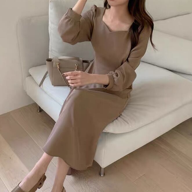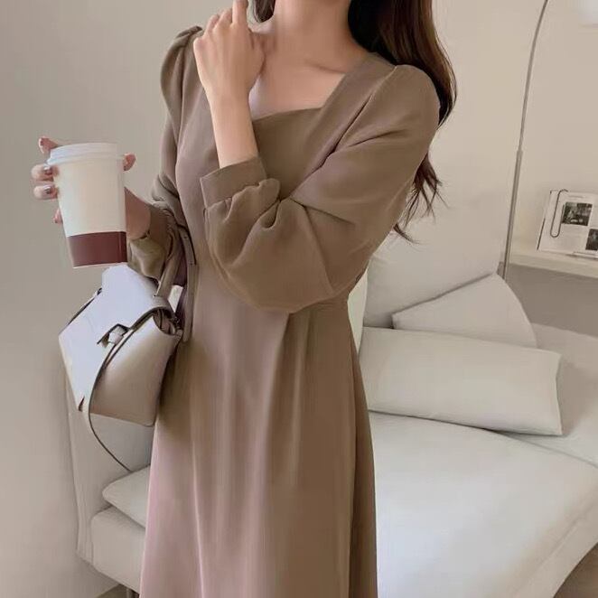 ワンピース ロングワンピース ミモレ丈 ロング丈 長袖 パフスリーブ スクエアネック Aライン バックリボン ファスナー ハイウエスト 無地 大人可愛い きれいめ シンプル 上品 おしゃれ お洒落 ガーリー フェミニン 清楚 秋 冬 入学式 入園式 卒業式 卒園式 謝恩会 10代 20代 30代 40代 レディース 女性用 デート お出かけ 女子会 休日 レストラン ショッピング 公園 普段使い 韓国 韓国系 オルチャン ファッション コーデ スタイル モテ 脚長 高見え デイリー サイズ S M L