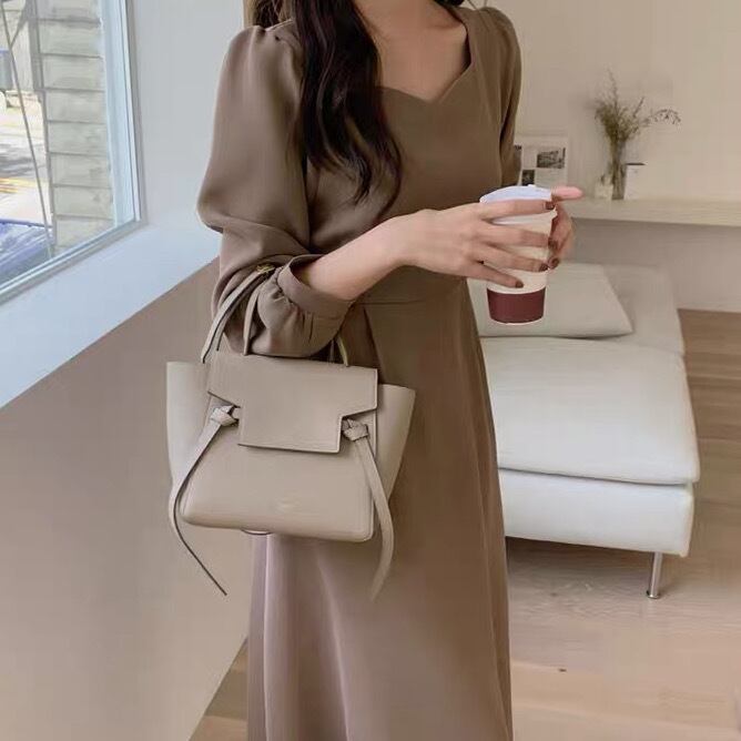 キャメルの色味が大人可愛らしい、パフスリーブロングワンピース