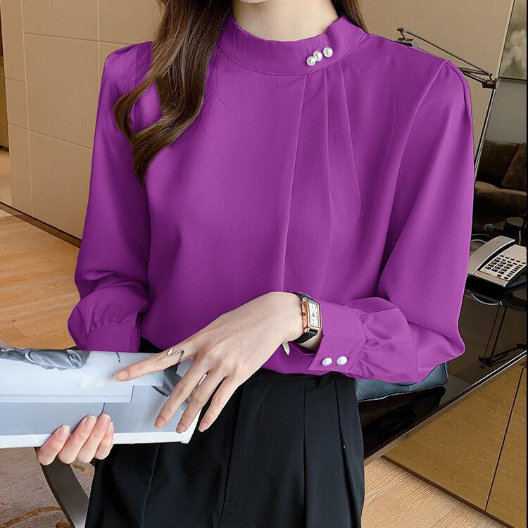 トップス ブラウス シャツ 長袖 スタンドカラー スリムフィット 無地 大人可愛い きれいめ シンプル 大人 上品 おしゃれ お洒落 フォーマル 清楚 春 秋 入学式 入園式 卒業式 卒園式 10代 20代 30代 40代 レディース 女性用 オフィス ビジネス OL 通勤 デート レストラン 着回し 普段使い 韓国 韓国系 オルチャン ファッション コーデ スタイル 高見え デイリー 色展開 白 ホワイト 黒 ブラック レッド 紫 パープル 灰色 グレー サイズ S M L XL 2XL 大きいサイズ