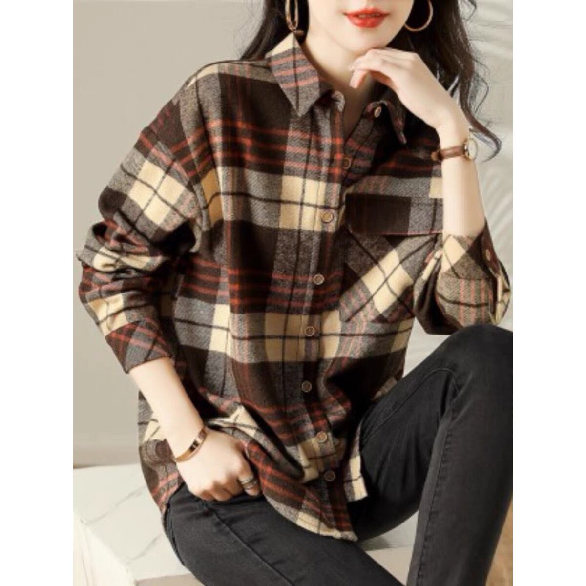 トップス チェックシャツ シャツ 上着 羽織り ミディアム丈 袖あり 長袖 襟付き ラペル 前開き 柄 チェック柄 起毛 大人可愛い シンプル カジュアル おしゃれ お洒落 レトロ クラシカル こなれ感 メンズライク ボーイッシュ ガーリー 秋 冬 10代 20代 30代 40代 レディース 女性用 デート お出かけ 女子会 休日 ショッピング 公園 着回し 普段使い 韓国 韓国系 オルチャン ファッション コーデ スタイル 暖かい デイリー 茶色 ブラウン サイズ S M L XL 2XL 大きいサイズ