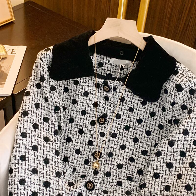 レディース ジャケット アウター 上着 長袖 ストレート シングルブレスト ボタン ツイード かわいい 大人可愛い きれいめ シンプル カジュアル 上品 おしゃれ レトロ ガーリー エレガント 主役級 存在感 フォーマル ラブリー キュート ドット柄 秋 冬 謝恩会 二次会 ママ OL 通勤 デート お出かけ パーティー イベント レストラン 女子会 ホテル ガーデン ショッピング モノトーン 韓国 コーデ 暖かい 体型カバー 着回し モテ 清楚 トレンド 流行 インスタ映え S M L ブラック