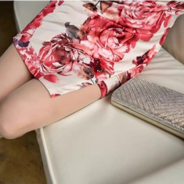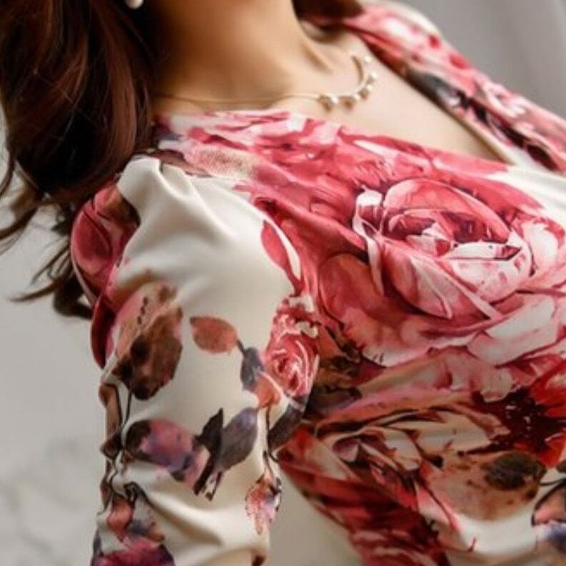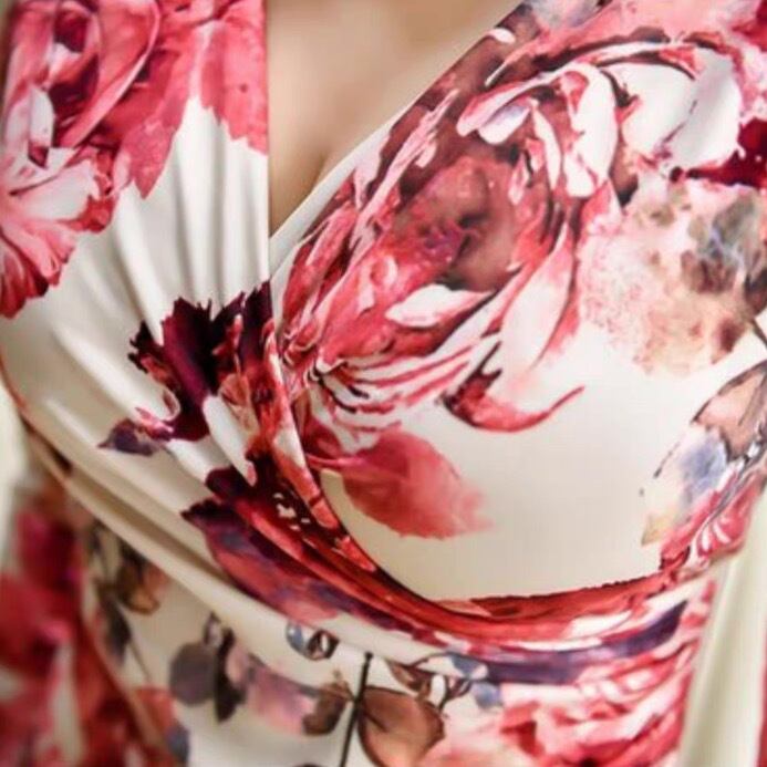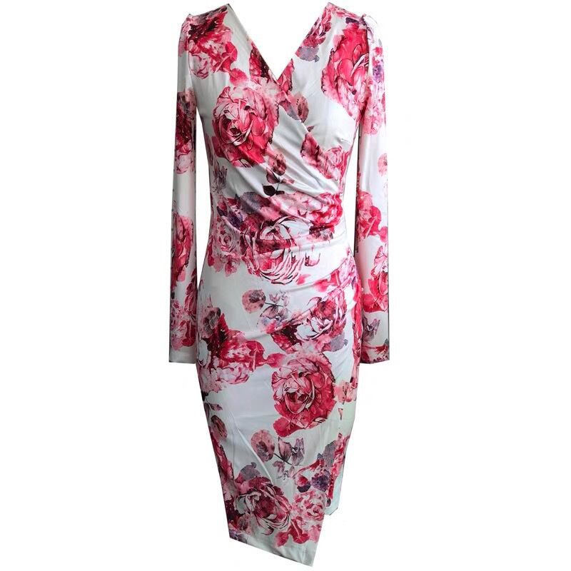ドレス ワンピース パーティードレス 膝丈 ひざ丈 ミモレ丈 長袖 カシュクール Vネック タイト スリムフィット ファスナー ハイウエスト 柄 花柄 フラワー セレブ エレガント セクシー 華やか 大人 おしゃれ お洒落 主役級 存在感 春 秋 冬 パーティー パーティ レストラン ディナー デート 女子会 ランチ会 お呼ばれ 10代 20代 30代 40代 レディース 女性 韓国 韓国系 オルチャン ファッション コーデ スタイル トレンド ワンホン 美脚 脚長 インスタ映え サイズ S M L XL