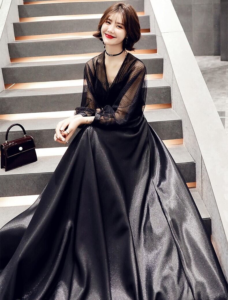 ドレス ウェディング パーティー 結婚式 二次会 披露宴 演奏会 発表会 謝恩会 ロング 長袖 Vネック スリム 細身 Aライン ハイウエスト シースルー 可愛い きれいめ シンプル 大人可愛い 上品 おしゃれ かっこいい ガーリー クール エレガント 主役級 存在感 とろみ感 クラシック 清楚 ゴージャス セクシー シック 華やか ナチュラル 無地 ホテル ガーデン レストラン 韓国 高見え 格上げ 女子会 光沢感 シーズンレス キャバ ラウンジ クラブ XS 2XL S M L XL ブラック