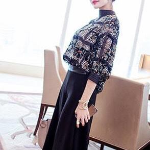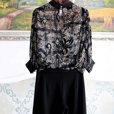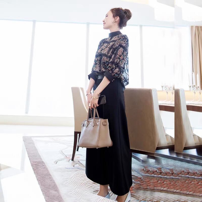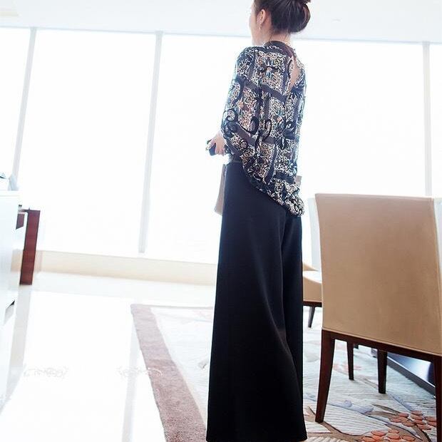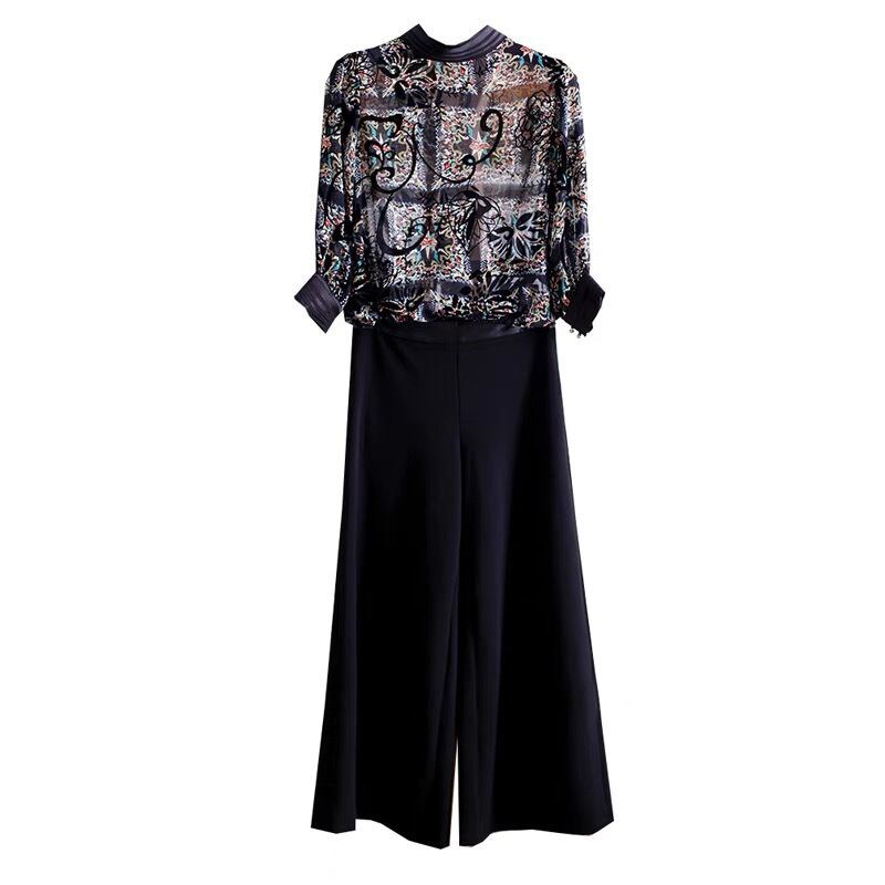 3点セット パンツ ブラウス インナー キャミソール セットアップ パーティードレス フォーマルドレス パンツドレス 七分袖 ワイドパンツ 上下セット 柄 きれいめ 大人 上品 おしゃれ お洒落 大人女子 クール 主役級 存在感 エレガント モダン ラフ ルーズ 春 秋 二次会 10代 20代 30代 40代 レディース 女性用 着回し 普段使い 韓国 韓国系 オルチャン ファッション コーデ スタイル 美脚 脚長 黒 ブラック サイズ展開 S M L XL 2XL 3XL 大きいサイズ 大きい ゆったり