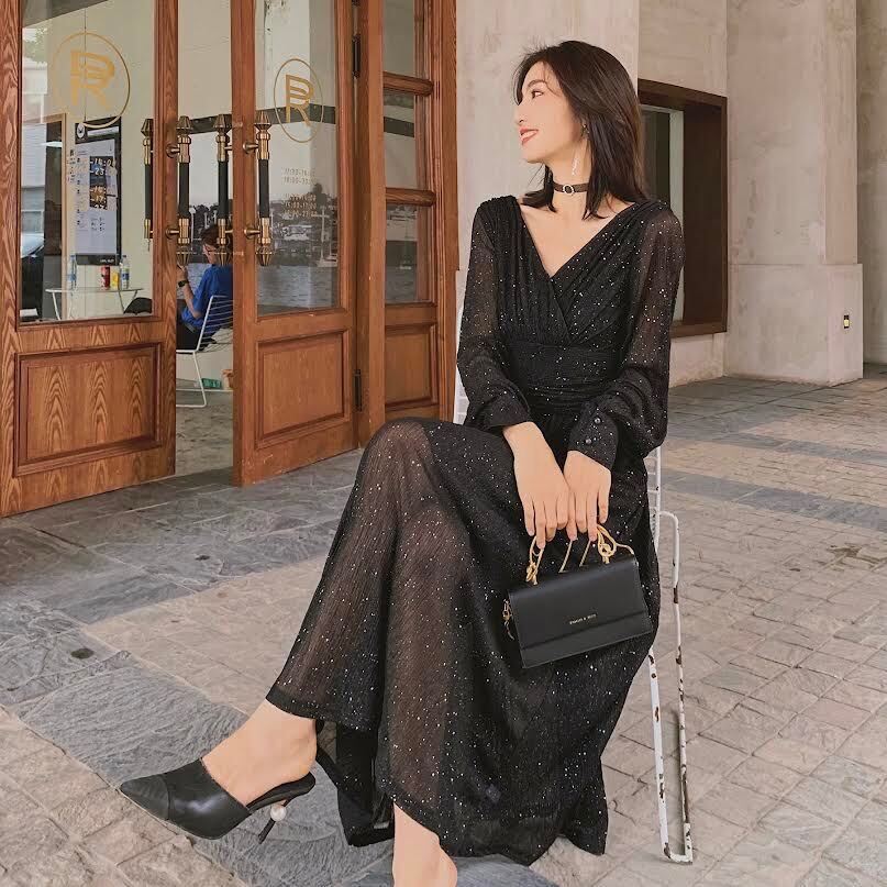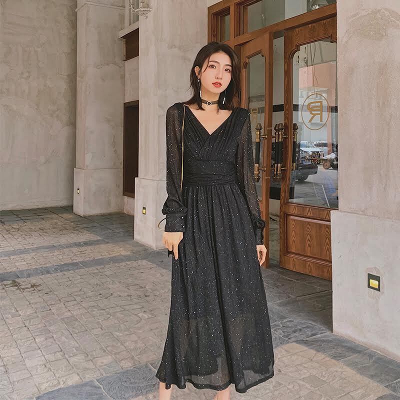 ロング丈でありながらスリムなシルエットが魅力的な長袖ワンピースです。Vネックで襟なしのデザインは、女性らしさを引き立てるだけでなく、華奢な印象を与えます。ウエストにマークがあり、体のラインをきれいに引き締めます。薄手の素材で作られており、カジュアルからきれいめまで幅広いスタイルに合わせることができます。大人可愛い、おしゃれ、お洒落、かっこいい、レトロなど様々なテイストにもマッチするアイテムです。