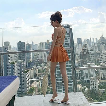 胸元のリボンデザインとフリルスカートがかわいらしさを演出してくれるワンピース水着です。ハイウエストデザインが脚長効果を持ち、美しいシルエットを実現。胸元のパッドでバストを盛り上げ、谷間も魅せることができます。どんなシーンにも合わせやすいシンプルなデザインでありながら、セクシーさをアピールすることもできるアイテムです。