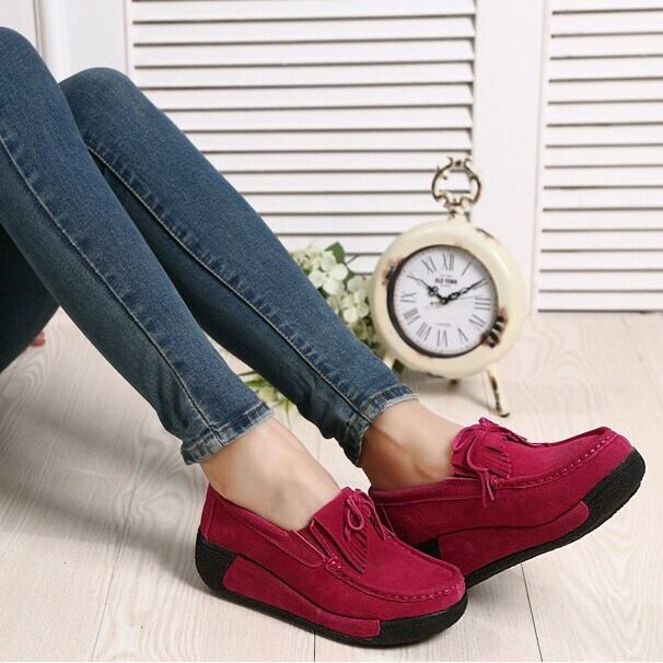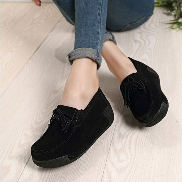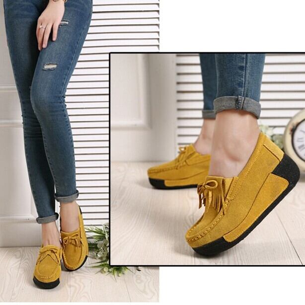 モカシンタイプのロッキングシューズ。厚底の5cmヒールが、美脚効果を引き出してくれます。タッセル付きのデザインは、とてもかわいくて大人可愛い印象。さまざまなシーンで活躍すること間違いなしです。
