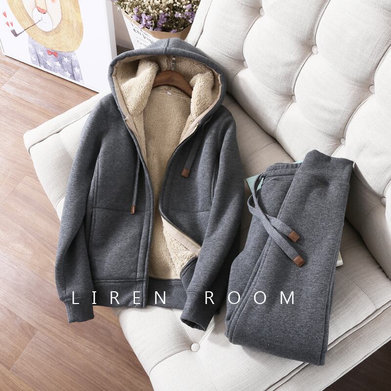 女性らしい可愛さと快適さを追求した、フード付きのセットアップパーカーとパンツの2点セットです。寒い季節にぴったりのアイテムです!ファスナーとポケットがついていて、使いやすさも抜群。