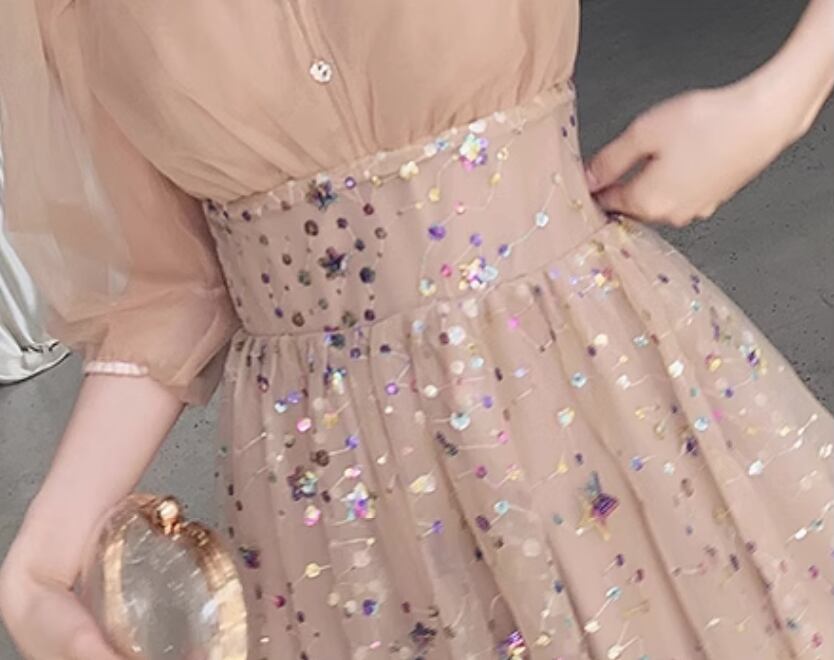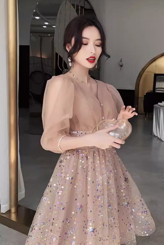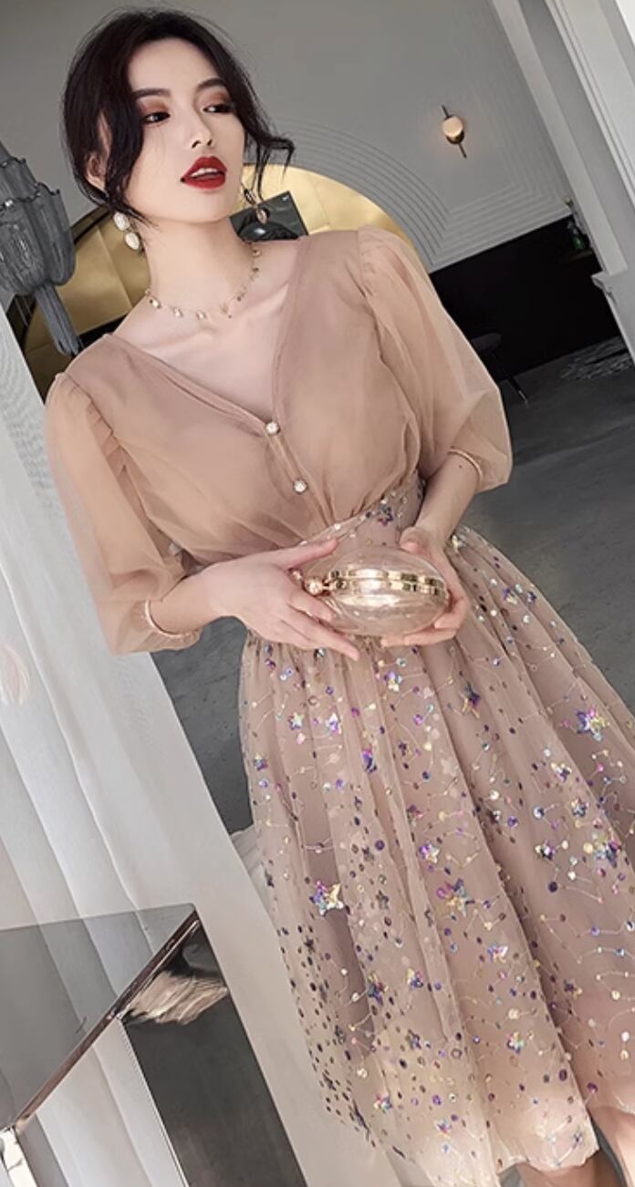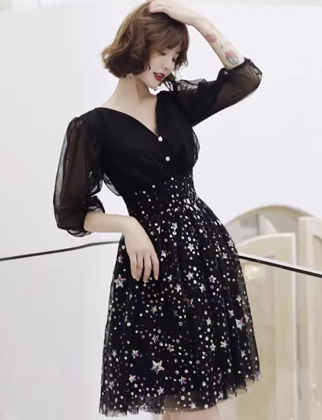 レディース ドレス ワンピース フレアワンピース ワンピドレス ショート ショート丈 袖あり 9分袖 Vネック フレア セミフレア Aライン レース 刺繍 チュール シフォン フリル 切り替えデザイン 透け感 スパンコール ポリエステル かわいい 大人可愛い きれいめ お洒落 セクシー エレガント 主役級 存在感 フォーマル 無地 春 夏 謝恩会 結婚式 披露宴 10代 20代 パーティー イベント ファッション サイズ S M L XL 2XL 3XL 大きいサイズ ビッグサイズ 黒 ブラック ベージュ