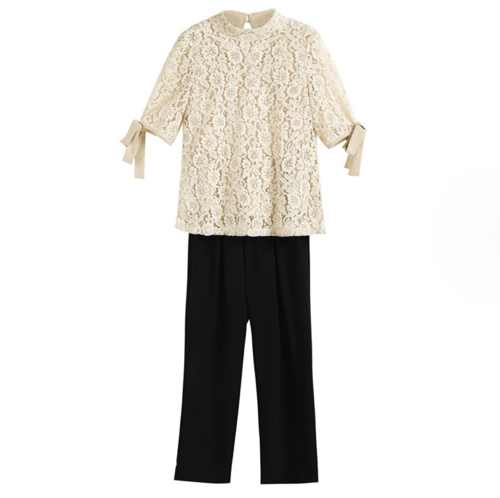 レディーストップスとパンツのセットです。シンプルなデザインで、さまざまなスタイリングに合わせやすく、カジュアルからきれいめまで幅広いコーディネートが楽しめます。女性らしいヴィンテージやラブリーな要素も取り入れ、存在感を放つスタイリングを叶えます。