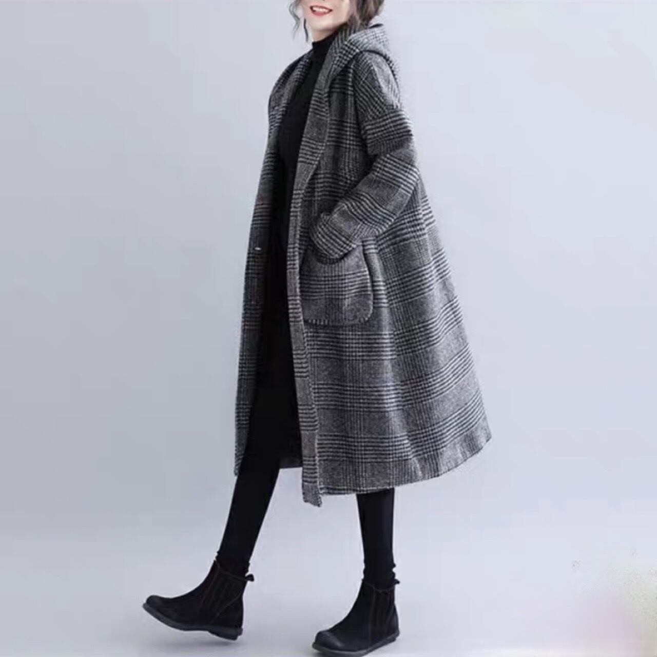 アウター コート フーデットコート 上着 長袖 フード付き ポケット 前開き 柄 チェック柄 千鳥格子 グレンチェック 大人可愛い シンプル カジュアル おしゃれ お洒落 レトロ 大人女子 こなれ感 秋 冬 10代 20代 30代 40代 50代 レディース 女性用 オフィス ビジネス OL 通勤 デート お出かけ 女子会 休日 ショッピング 着回し 普段使い 韓国 韓国系 オルチャン ファッション コーデ スタイル 暖かい 防寒 デイリー 色展開 黒 ブラック 茶色 ブラウン サイズ L XL 2XL