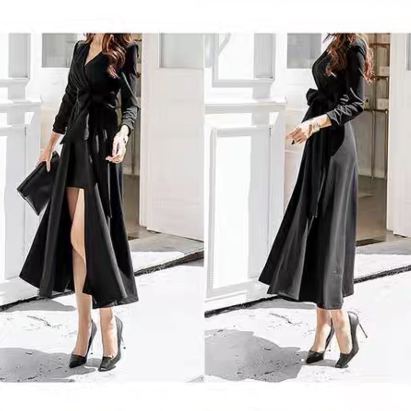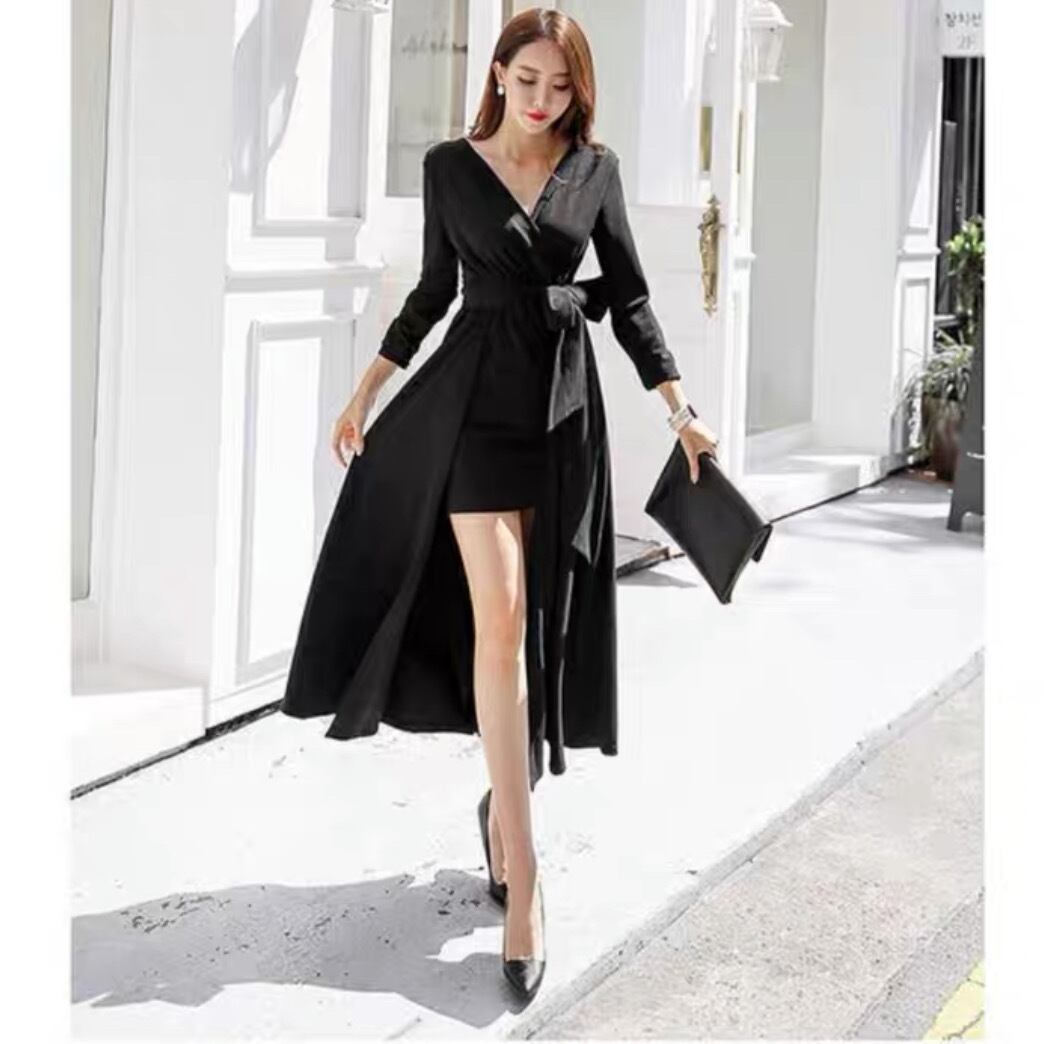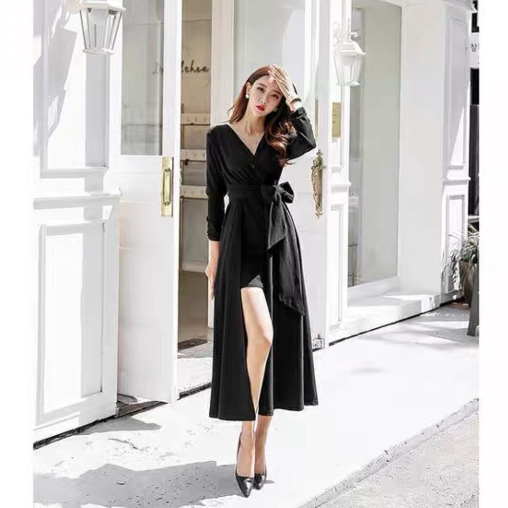 ドレス 衣装 ワンピース パーティードレス 二次会ドレス ロングドレス ラップドレス 長袖 Vネック カシュクール Aライン 巻き ウエストマーク ウエストリボン ハイウエスト 胸元 谷間 谷間魅せ 無地 エレガント きれいめ おしゃれ お洒落 セクシー キャバ クラブ 春 秋 冬 お呼ばれ 10代 20代 30代 40代 レディース 女性用 韓国 韓国系 オルチャン ファッション コーデ スタイル 色展開 黒 ブラック サイズ L XL 2XL 3XL 4XL 5XL 大きいサイズ 大きめ ビッグサイズ