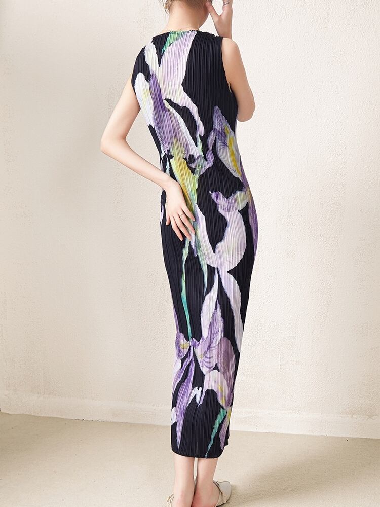 ワンピース ロング丈 袖なし ノースリーブ ラウンドネック 襟なしスリム 花柄 伸縮性 大人可愛い きれいめ シンプル カジュアル 大人 上品 お洒落 かっこいい レトロ 大人可愛い 大人女子 こなれ感 ラフ クール モード系 エレガント モダン 主役級 存在感 とろみ感 抜け感 夏 20代 30代 40代 レディース デート お出かけ 女子会 休日 普段使い 韓国 オルチャン コーデ トレンド 流行 フリーサイズ ワンサイズ ホワイト ブラック