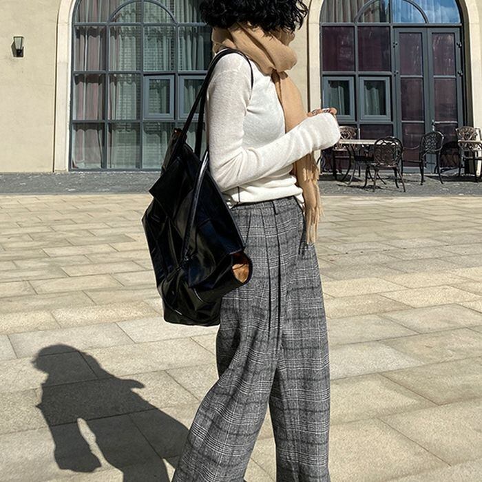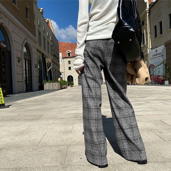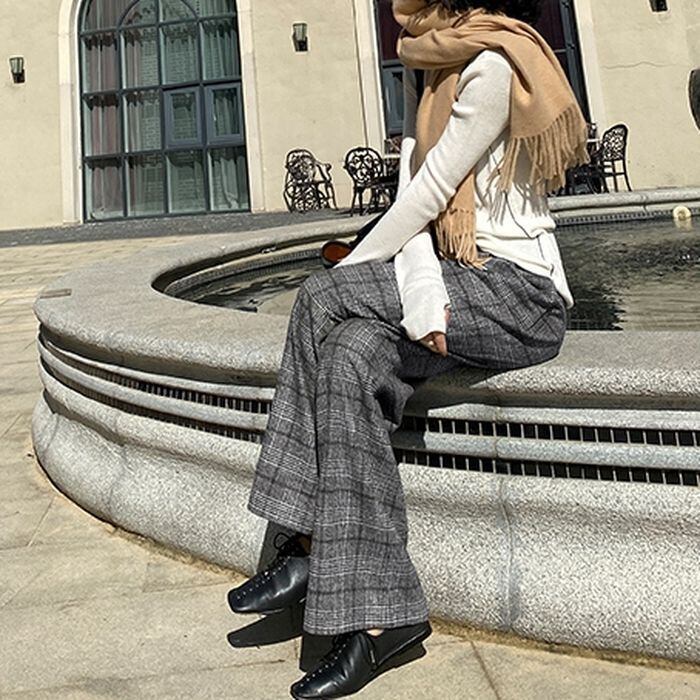 ボトムス パンツ ワイドパンツ ハイウエスト グレンチェック 大人可愛い 大人女子 きれいめ シンプル 上品 こなれ感 クール ハンサム モダン ラフ ルーズ おしゃれ お洒落 フォーマル 春 夏 秋 冬 入学式 入園式 卒業式 卒園式 10代 20代 30代 40代 レディース 女性用 オフィス OL ビジネス 通勤 デート お出かけ 休日 ショッピング 着回し 普段使い 韓国 韓国系 オルチャン ファッション コーデ スタイル 脚長 デイリー S M L グレー