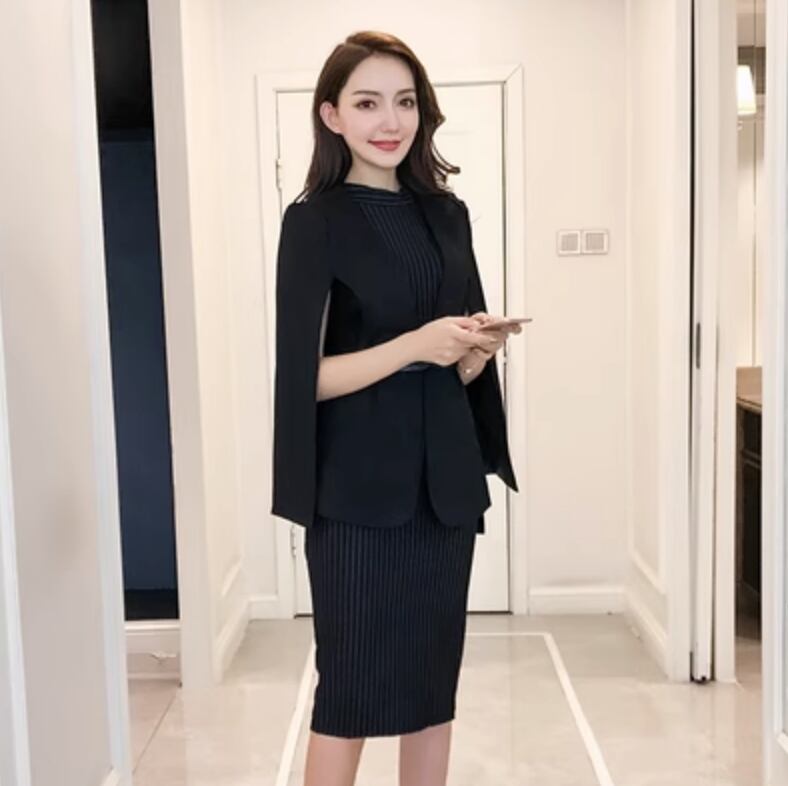 クラシックでシックな雰囲気漂うレディースワンピースが登場。タイトなシルエットで女性らしいスタイルを引き立てます。長めの丈デザインで、大人っぽく洗練された印象を与える一枚です。
