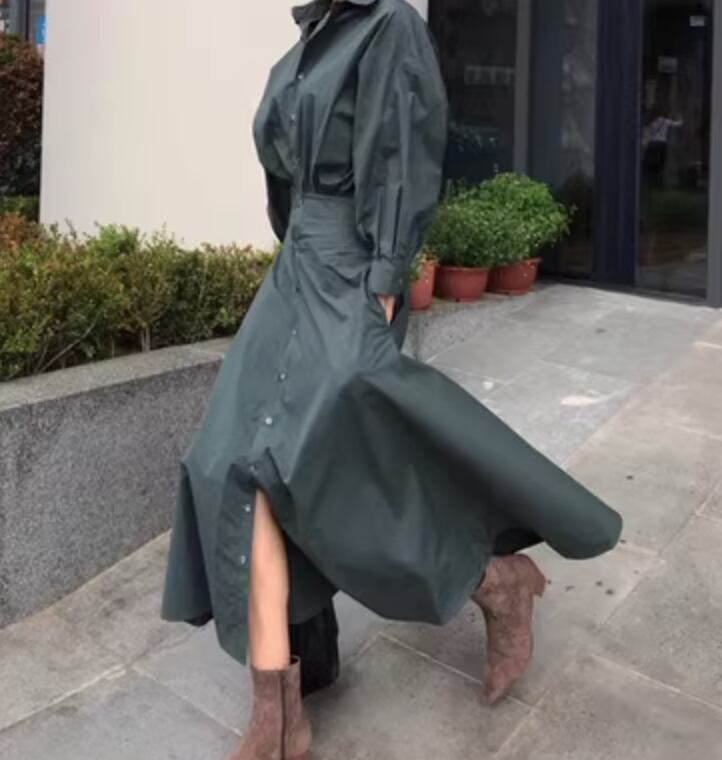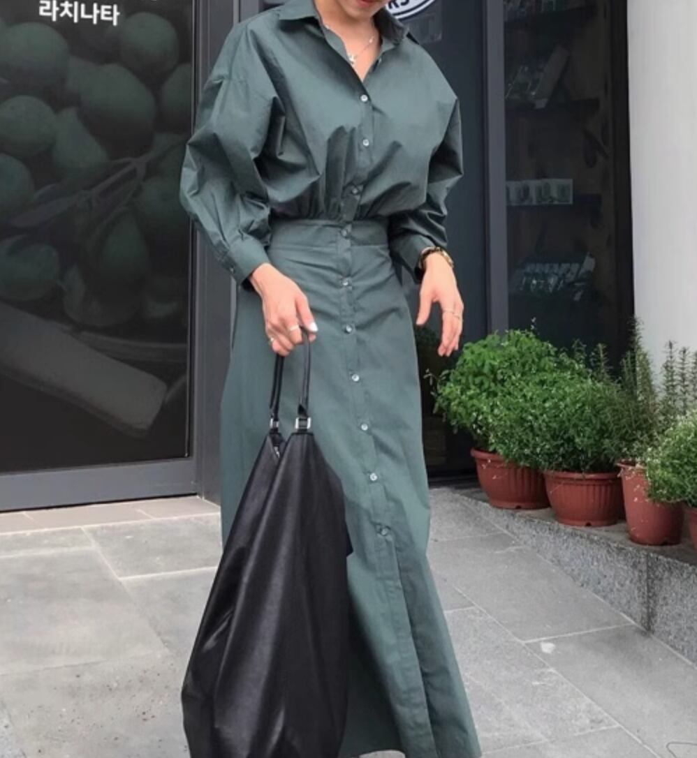 レディース ワンピース シャツワンピ ロング 長袖 かわいい 大人可愛い きれいめ シンプル カジュアル 上品 おしゃれ かっこいい レトロ こなれ感 ラフ ガーリー ルーズ 個性的 クール モード系 エレガント 主役級 存在感 ヴィンテージ ラブリー キュート ゴシック 都会的 ラグジュアリー クラシカル 無地 春 秋 OL 学生 デート お出かけ イベント 旅行 女子会 休日 ショッピング カフェ コーデ 楽ちん 普段使い 着回し モテ インスタ映え S M ゆったり ゆる カーキ グリーン