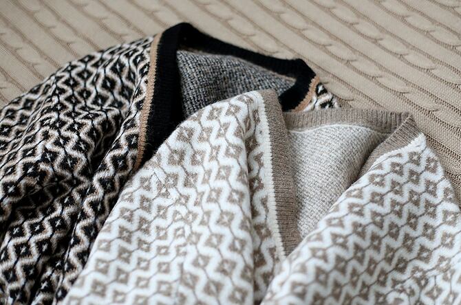 個性的でレトロなデザインが魅力のニットカーディガン。