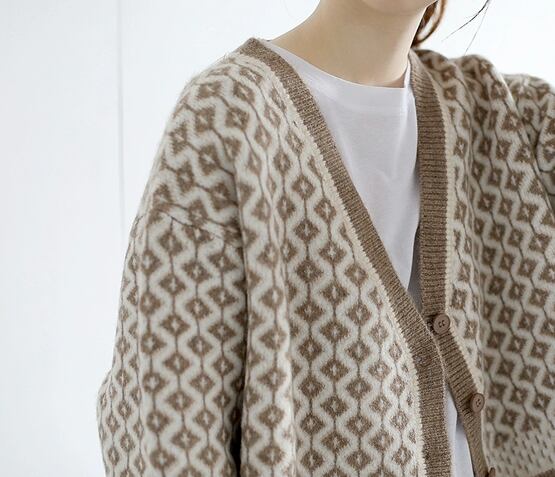 個性的 レトロ トップス セーター カーディガン 袖あり Vネック 襟なし 前開き 伸縮性 ボタン ニット かわいい 大人可愛い カジュアル 大人 上品 おしゃれ お洒落 大人女子 こなれ感 モダン 主役級 存在感 抜け感 柄 秋 冬 10代 20代 30代 40代 50代 レディース オフィス OL 通勤 学生 通学 デート お出かけ 公園デビュー 女子会 お泊まり 休日 旅行 着回し 普段使い 重ね着 暖かい 防寒 体系カバー インスタ映え S M L XL