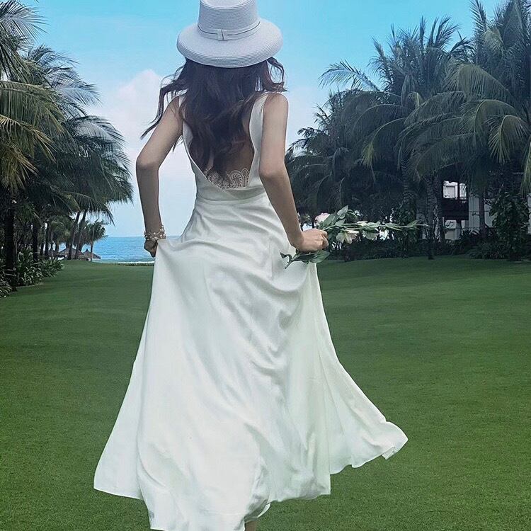 ドレス ロングドレス ロング丈 マキシ丈 ノースリーブ Vネック フレア Aライン バックシャン バックコンシャス 無地 大人可愛い きれいめ シンプル 上品 おしゃれ お洒落 こなれ感 セクシー エレガント 主役級 存在感 フォーマル 春 夏 衣装 10代 20代 30代 40代 レディース 女性用 パーティー イベント リゾート 旅行 着回し 普段使い 韓国 韓国系 オルチャン ファッション コーデ スタイル モテ インスタ映え デイリー 色展開 白 ホワイト サイズ XS S M L 小さいサイズ