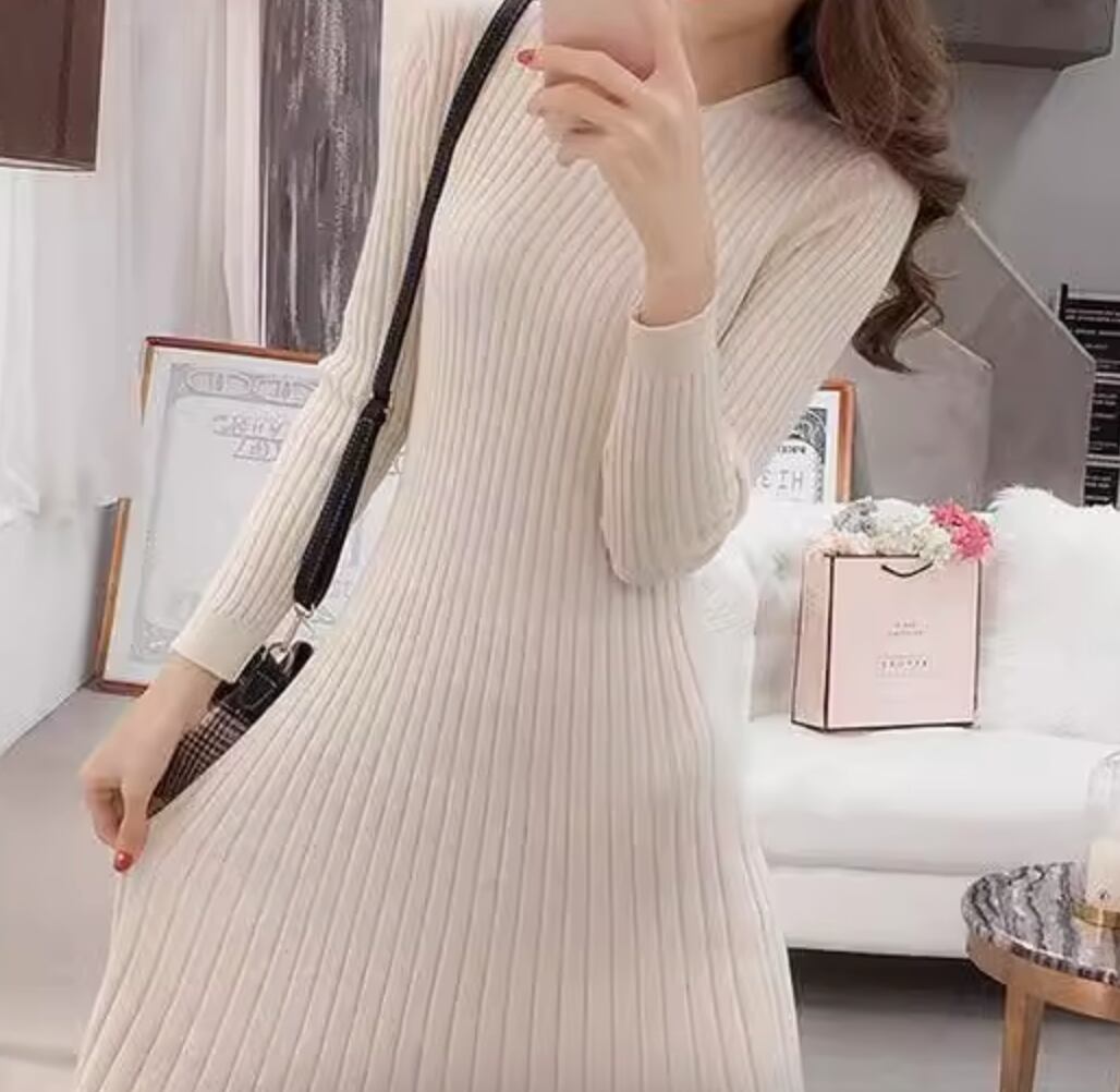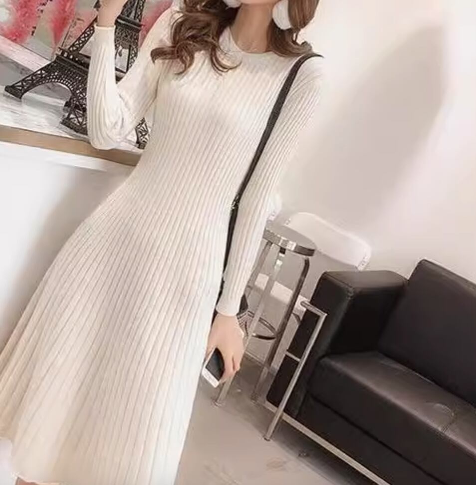 カジュアルで可愛いニットワンピースが登場しました!シンプルでありながら、細身のシルエットが女性らしさを引き立て、スリムな印象を与えます。また、ミモレ丈なので、大人っぽさも演出できますよ。