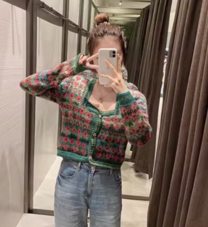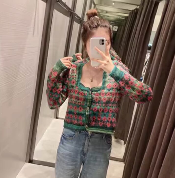 個性的なスタイルにぴったりのレトロニットが登場しました。スクエアネックがおしゃれで女性らしい印象を与えてくれます。オフィスやデート、カフェなど様々なシーンで活躍すること間違いなしです。