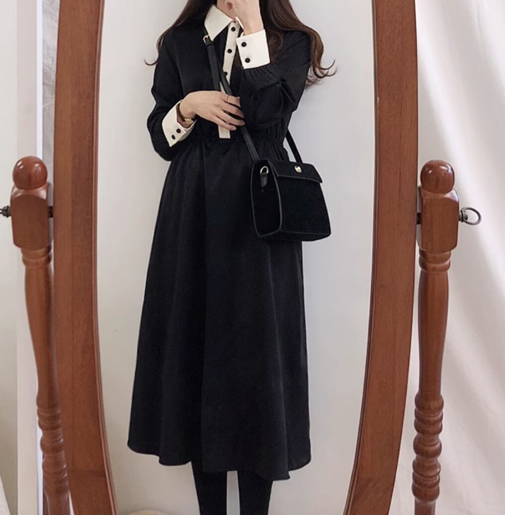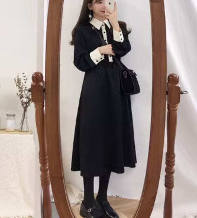 レディース ワンピース シャツワンピ フレア ミモレ 長袖 かわいい 大人可愛い きれいめ シンプル カジュアル 上品 おしゃれ かっこいい レトロ こなれ感 ラフ ガーリー ルーズ 個性的 クール モード系 エレガント 主役級 存在感 ヴィンテージ ラブリー キュート ゴシック 都会的 ラグジュアリー クラシカル 春 秋 OL 学生 デート お出かけ イベント 旅行 女子会 休日 ショッピング カフェ コーデ 楽ちん 普段使い 着回し モテ インスタ映え S M L XL 黒 ブラック