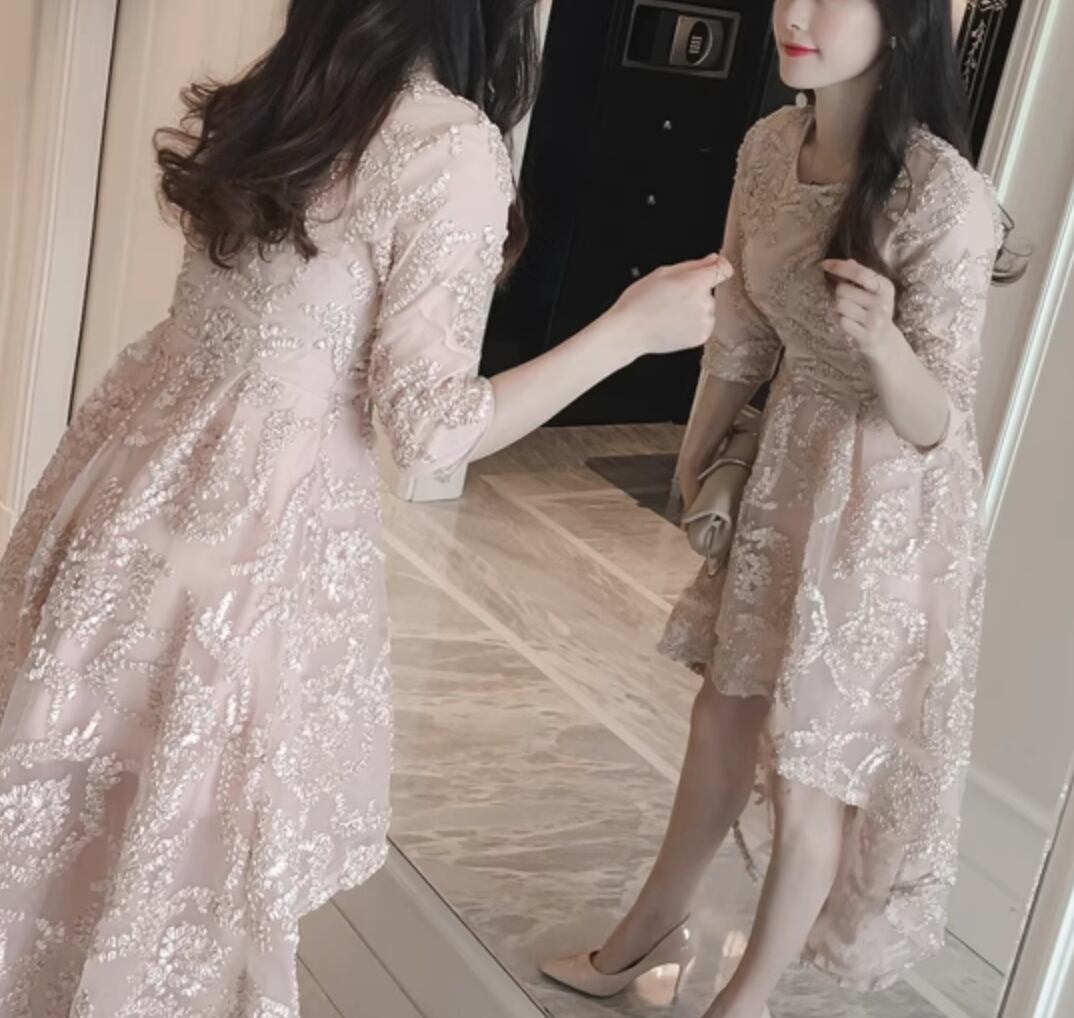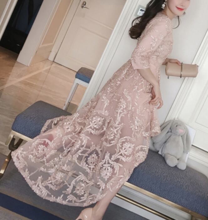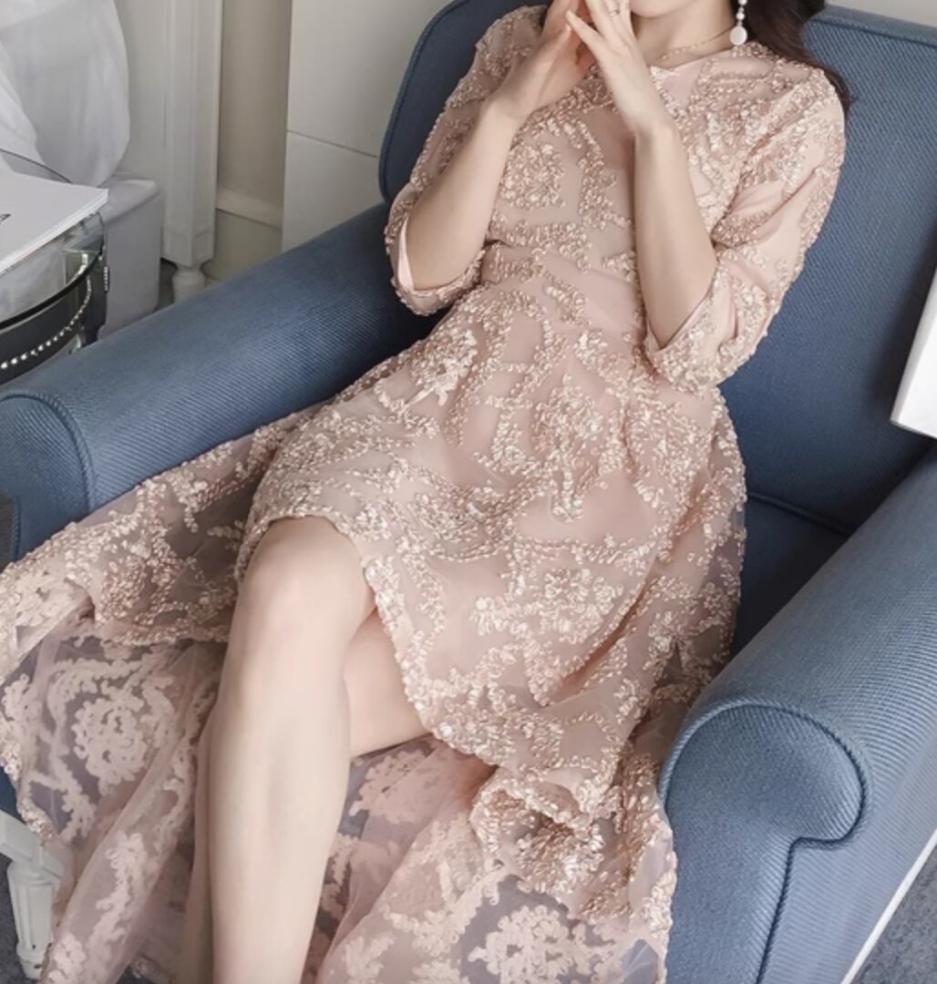 華やかさを纏った一枚で、特別な日をより華やかに彩りましょう。あなただけの存在感を放つ、このワンピースドレスで素敵な時間をお過ごしください。