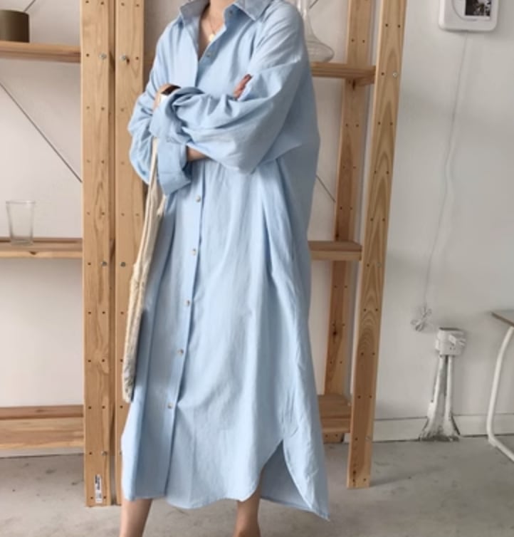 レディース ワンピース シャツワンピ ロング 長袖 かわいい 大人可愛い きれいめ シンプル カジュアル 上品 おしゃれ かっこいい レトロ こなれ感 ラフ ガーリー ルーズ 個性的 クール モード系 エレガント 主役級 存在感 ヴィンテージ ラブリー キュート ゴシック 都会的 ラグジュアリー クラシカル 春 秋 OL 学生 デート お出かけ イベント 旅行 女子会 休日 ショッピング カフェ コーデ 楽ちん 普段使い 着回し モテ インスタ映え S M L XL ゆったり ゆる ホワイト ブルー