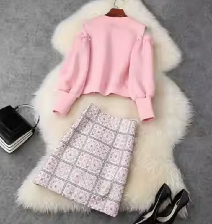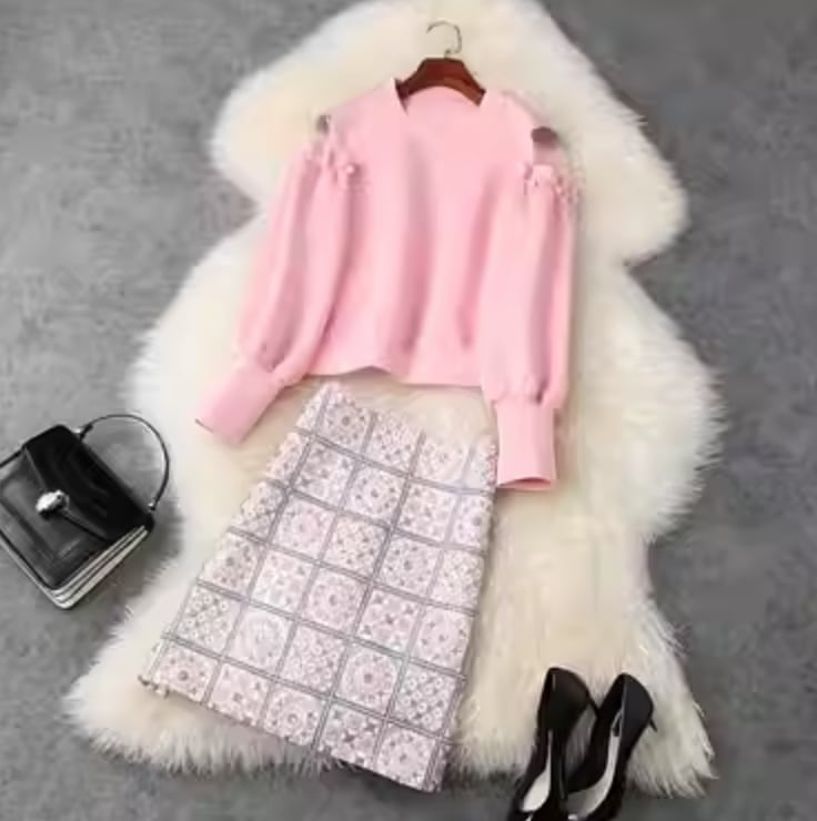 オシャレなレディースのためのセットアイテム、トップスとスカートのセットです。シンプルでありながら個性的なデザインが魅力的で、上品な印象を与えるアイテムです。大人可愛いスタイルやきれいめコーディネートにもぴったりです。