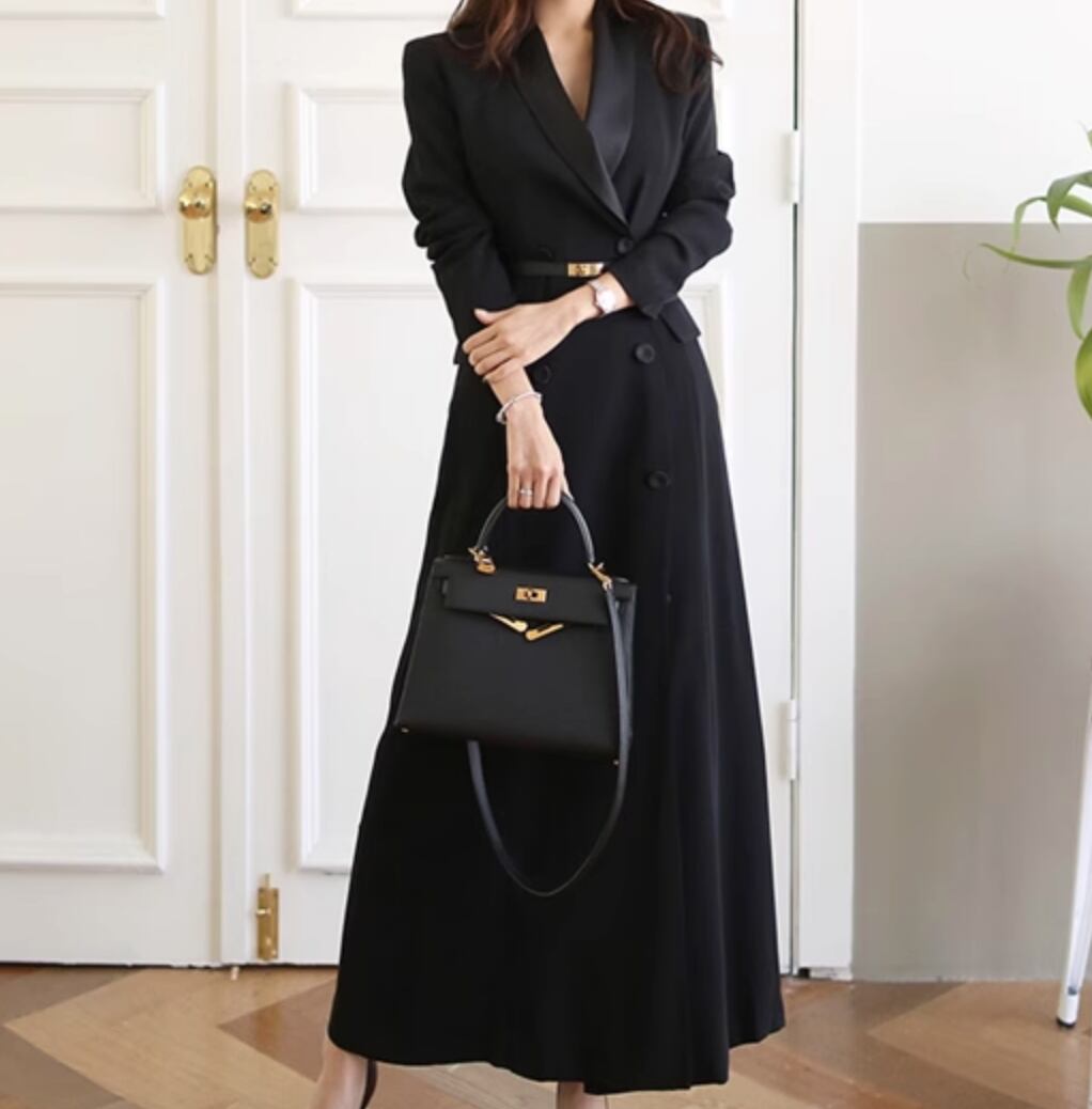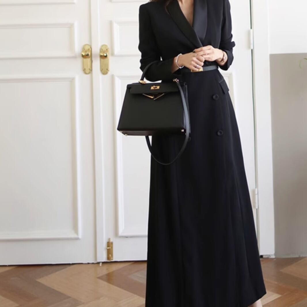 上品さと可愛らしさを兼ね備えたシックなワンピース。Vネックと長袖で、女性らしい魅力を引き出します。シンプルなデザインなので、さまざまなシーンに合わせやすく、大人可愛いスタイルを演出します。モード系やエレガントなコーディネートにもおすすめです。