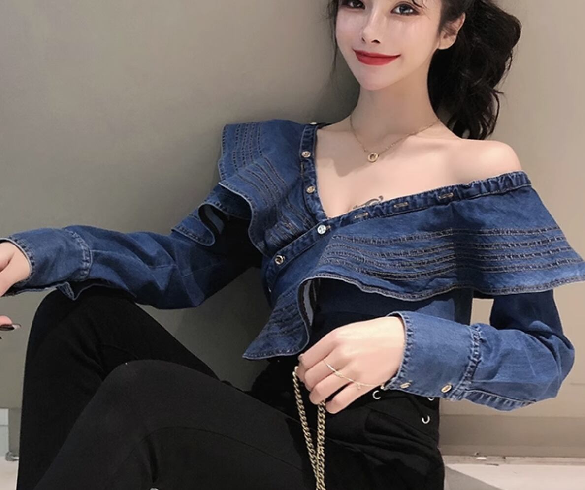 レディースのトップスとして、幅広いシーンで活躍するデニム長袖シャツをご紹介します。レトロな雰囲気が魅力で、大人可愛いデザインが特徴です。シンプルでありながらも、カジュアルから上品なスタイルまで、あらゆるコーディネートにマッチする一着です。