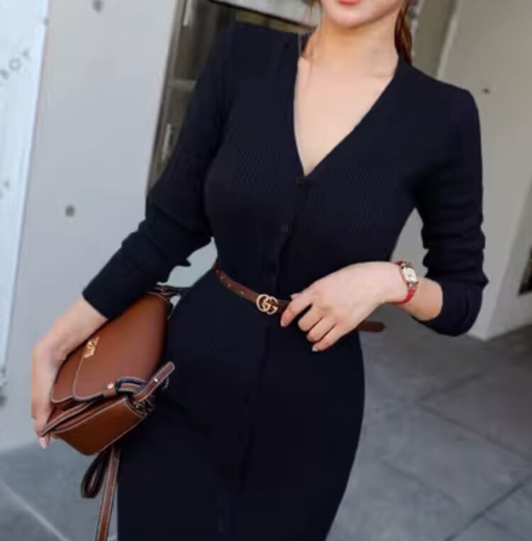 シンプルでありながら、存在感のあるシックなニットワンピースです。ミモレ丈の長さが女性らしさを引き立て、タイトなシルエットがスリムな印象を与えます。さまざまなスタイリングに合わせやすく、カジュアルからきれいめまで幅広いコーディネートが楽しめます。