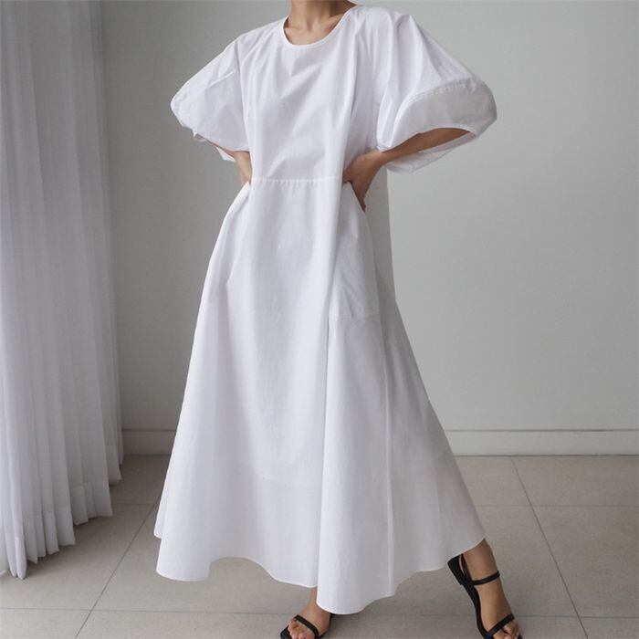 レディース ワンピース ロング 半袖 バルーンスリーブ かわいい 大人可愛い きれいめ シンプル カジュアル 上品 おしゃれ かっこいい レトロ こなれ感 ラフ ガーリー ルーズ 個性的 エレガント 主役級 存在感 ヴィンテージ ラブリー キュート ゴシック 都会的 ラグジュアリー クラシカル ナチュラル 無地 夏 OL 学生 デート お出かけ イベント 旅行 女子会 休日 ショッピング ライブ カフェ コーデ 楽ちん 普段使い 着回し モテ S M L XL ビッグ ゆったり ゆる ホワイト グリーン