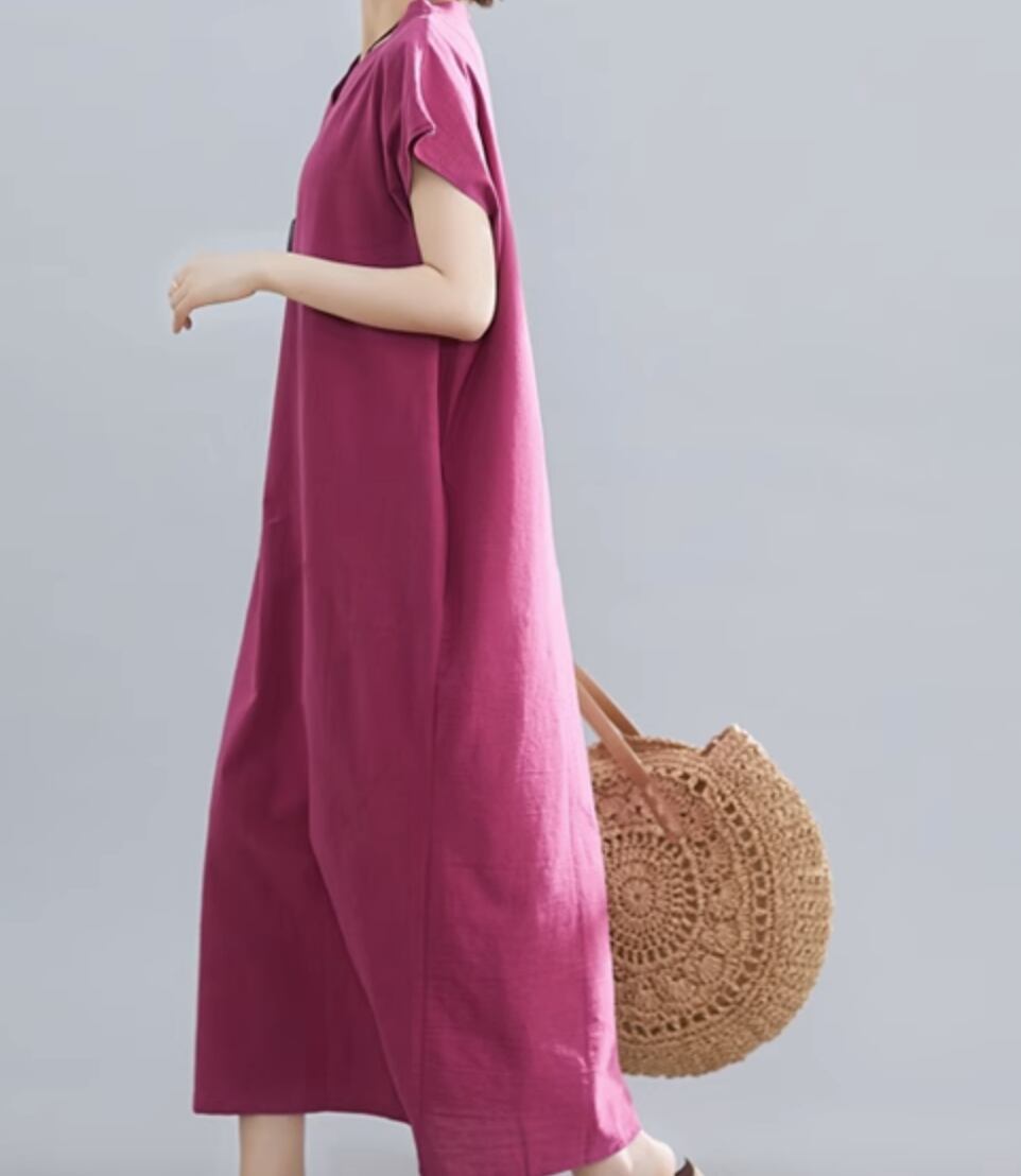 かわいくておしゃれなカジュアルワンピースが登場しました!大人可愛いロング丈で、どんなシーンでも活躍するアイテムです。シンプルなデザインながらも、個性的でこなれ感のあるスタイルを演出します。さまざまなコーディネートに合わせやすく、夏のお出かけやデート、イベントなど幅広い場面で活躍します。