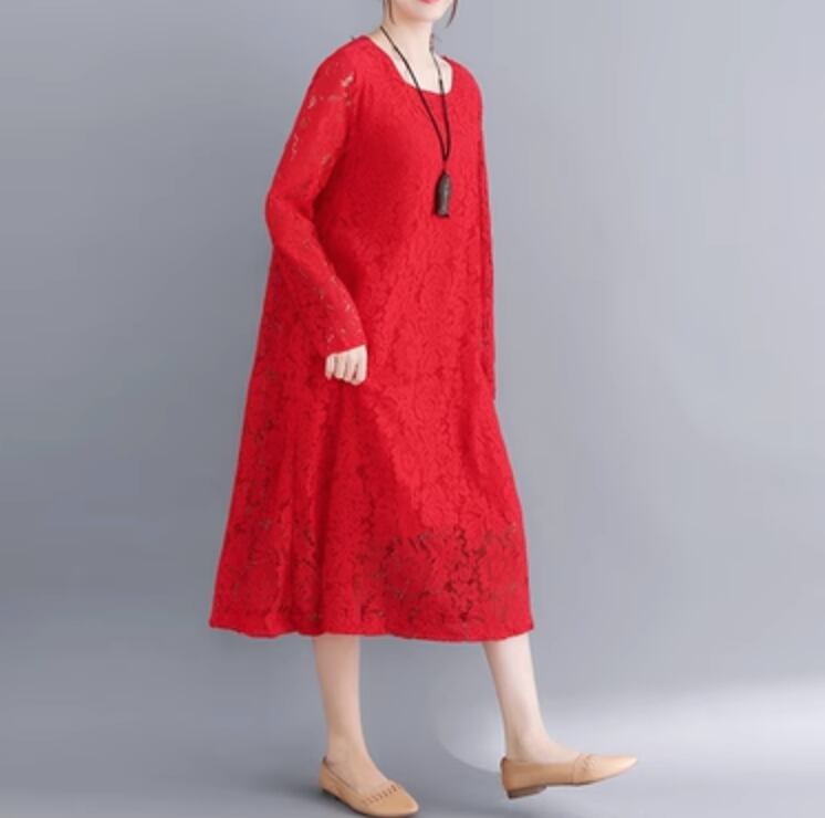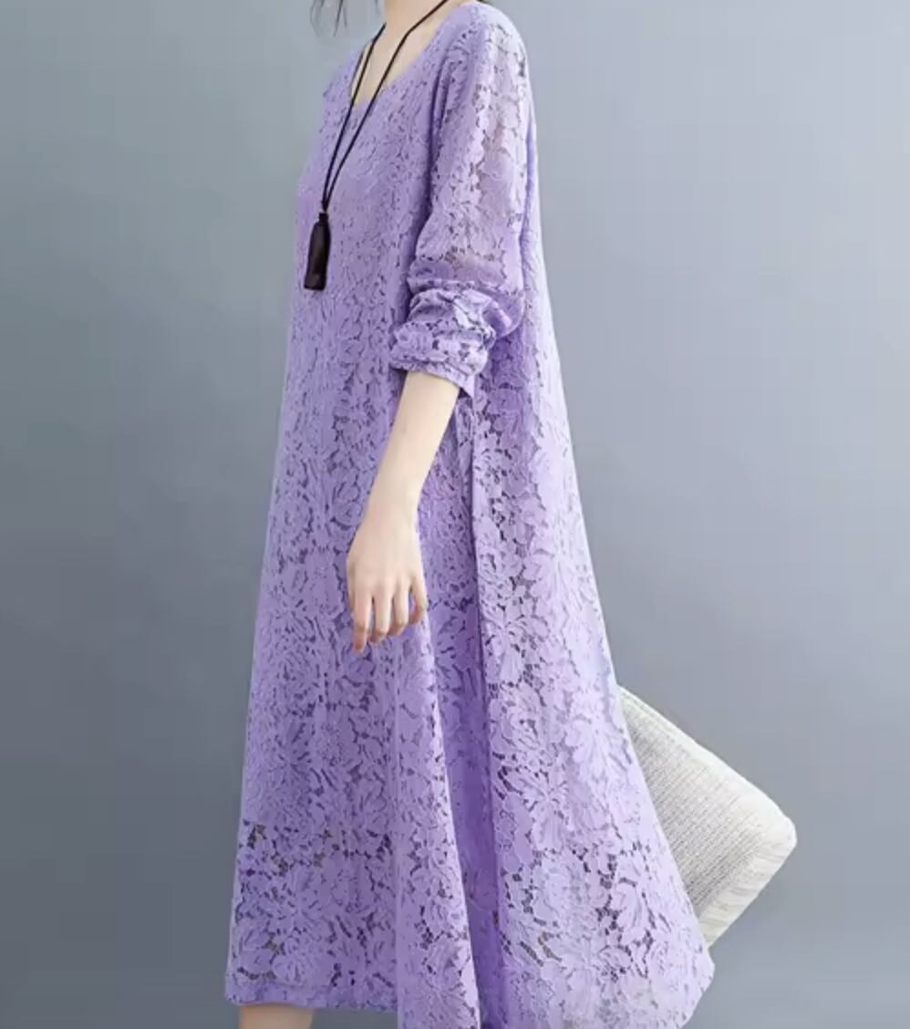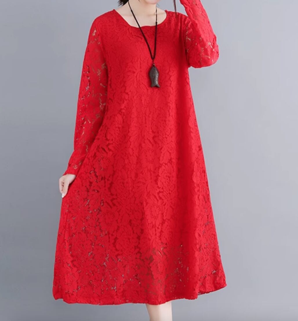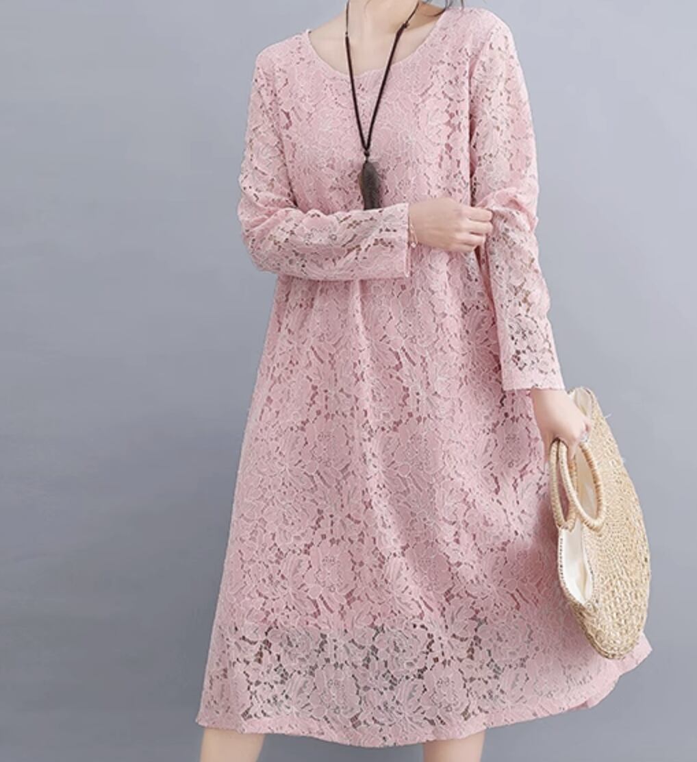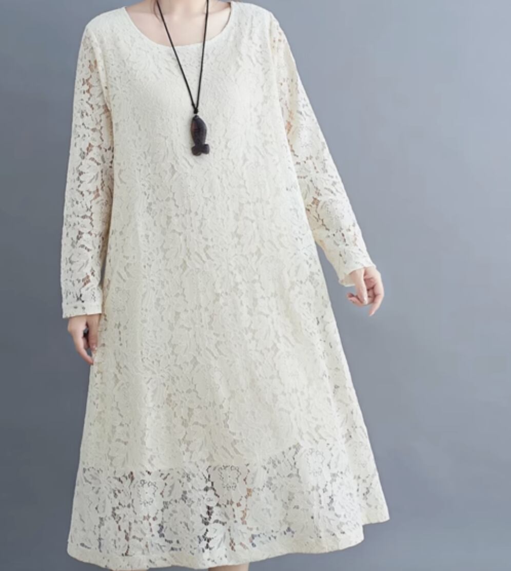 ワンピース ドレス ミモレ 長袖 レース かわいい 大人可愛い きれいめ シンプル カジュアル 上品 おしゃれ かっこいい レトロ こなれ感 ラフ ガーリー ルーズ 個性的 クール モード系 エレガント 主役級 存在感 抜け感 ヴィンテージ ラブリー キュート ゴシック 都会的 ラグジュアリー クラシカル ナチュラル 春 秋 OL 学生 デート お出かけ イベント 旅行 女子会 休日 ショッピング カフェ コーデ 楽ちん 普段使い 着回し モテ インスタ映え M L XL 2XL 3XL ゆったり ゆる