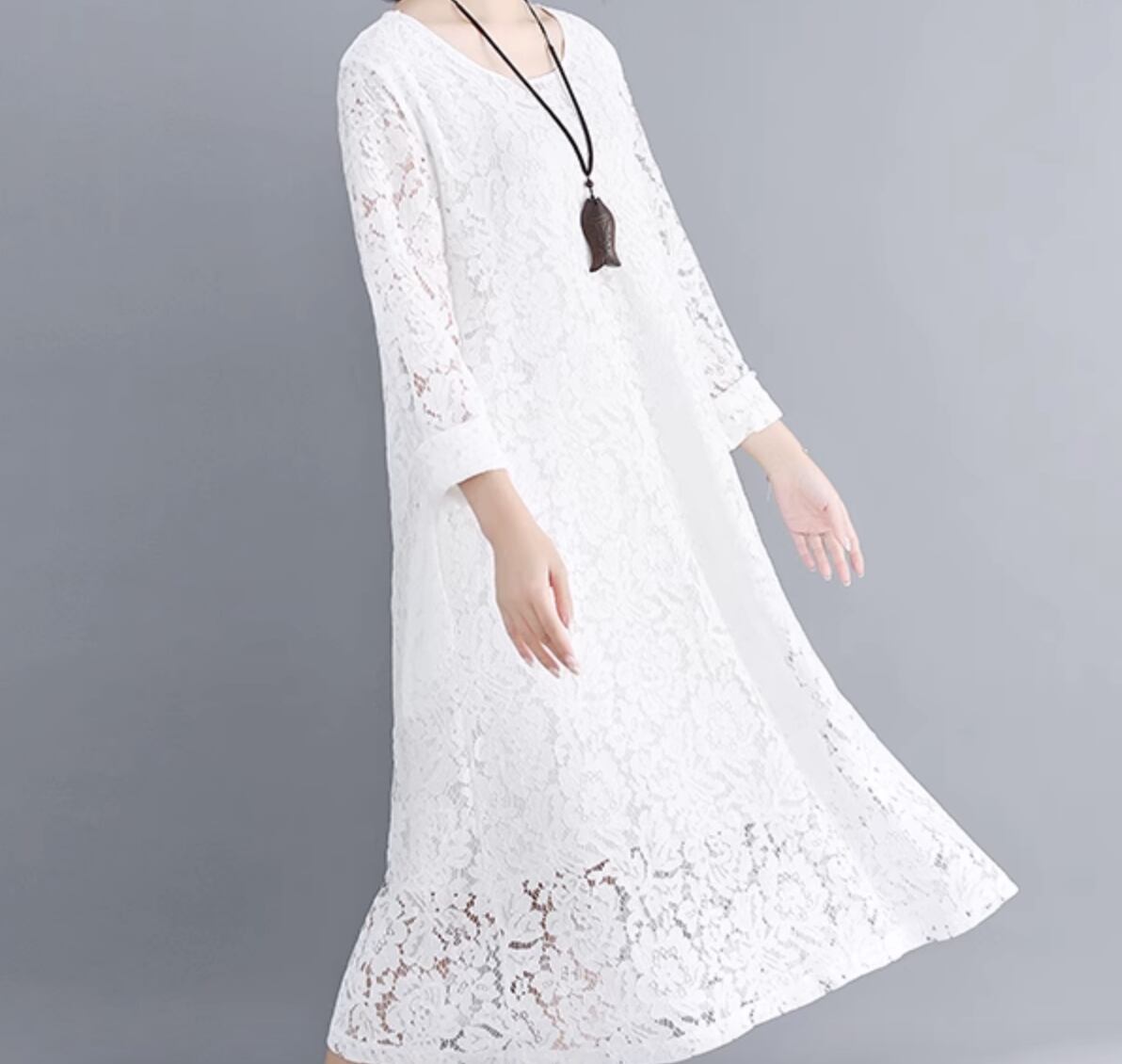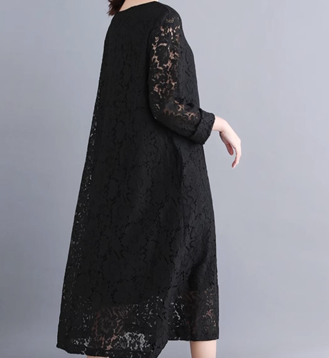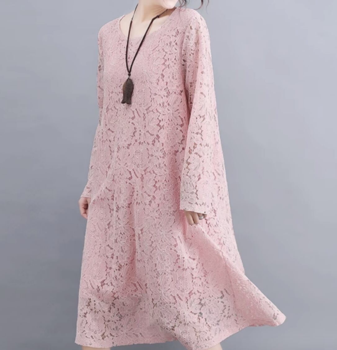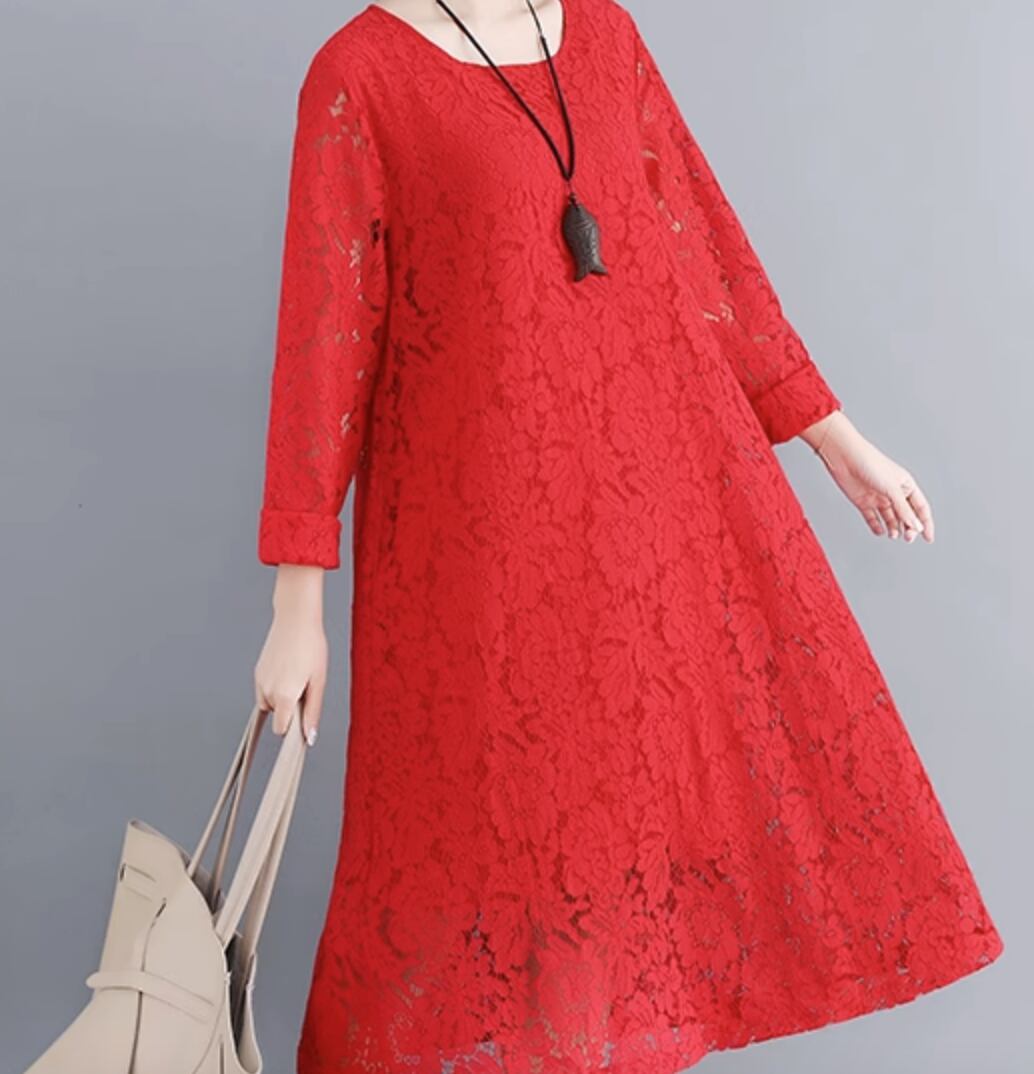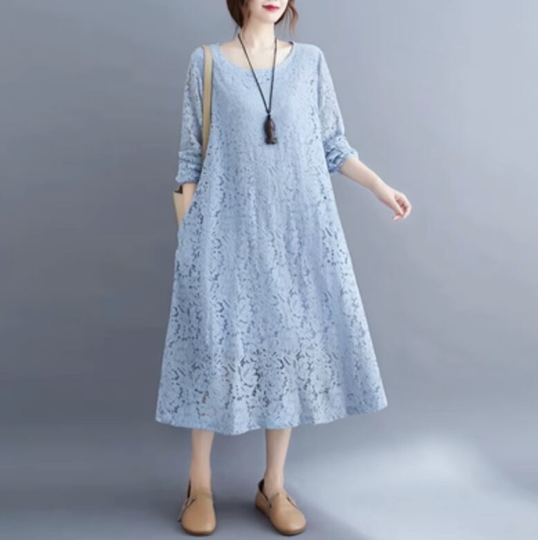 ワンピース ドレス ミモレ 長袖 レース かわいい 大人可愛い きれいめ シンプル カジュアル 上品 おしゃれ かっこいい レトロ こなれ感 ラフ ガーリー ルーズ 個性的 クール モード系 エレガント 主役級 存在感 抜け感 ヴィンテージ ラブリー キュート ゴシック 都会的 ラグジュアリー クラシカル ナチュラル 春 秋 OL 学生 デート お出かけ イベント 旅行 女子会 休日 ショッピング カフェ コーデ 楽ちん 普段使い 着回し モテ インスタ映え M L XL 2XL 3XL ゆったり ゆる