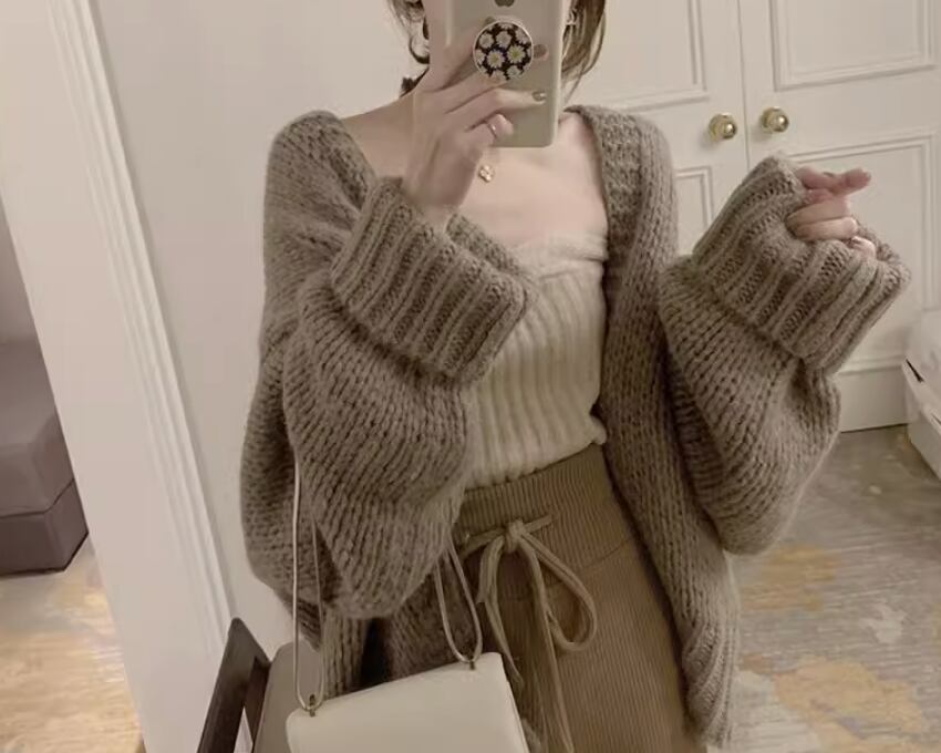 個性的 レディース トップス セーター カーディガン 膝上 袖あり 長袖 萌袖 襟なし フレア セミフレア ワイド もこもこ モコモコ ふわふわ 前開き かわいい 大人可愛い 大人 上品 お洒落 ラブリー キュート ガーリー 無地 ハロウィン クリスマス 10代 女性用 デート お出かけ 女子会 リゾート 着回し 普段使い ファッション スタイル 楽ちん 暖かい 防寒 モテ 体系カバー トレンド インスタ映え S M L ゆったり ゆる 茶色 ブラウン ピンク くすみカラー 大人カラー アプリコット