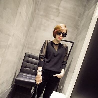 トップス カットソー 袖あり 長袖 ラウンドネック 切り替えデザイン 切り替えデザイン 透け感 シースルー 無地 きれいめ シンプル カジュアル 大人 おしゃれ お洒落 かっこいい こなれ感 クール モード系 抜け感 秋 冬 10代 20代 30代 40代 レディース 女性用 デート お出かけ 女子会 休日 ショッピング 公園 着回し 普段使い 韓国 韓国系 オルチャン ファッション コーデ スタイル モテ インスタ映え デイリー 黒 ブラック モノトーン サイズ展開 M L XL 2XL 大きいサイズ