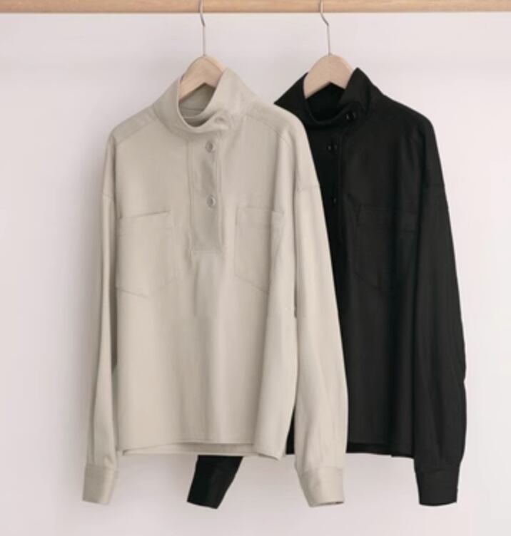 レトロな雰囲気が魅力のシャツをご紹介します。長袖で、かわいらしいデザインが特徴です。シンプルながらも大人可愛い雰囲気を演出でき、きれいめスタイルからカジュアルスタイルまで幅広くコーディネートできます。