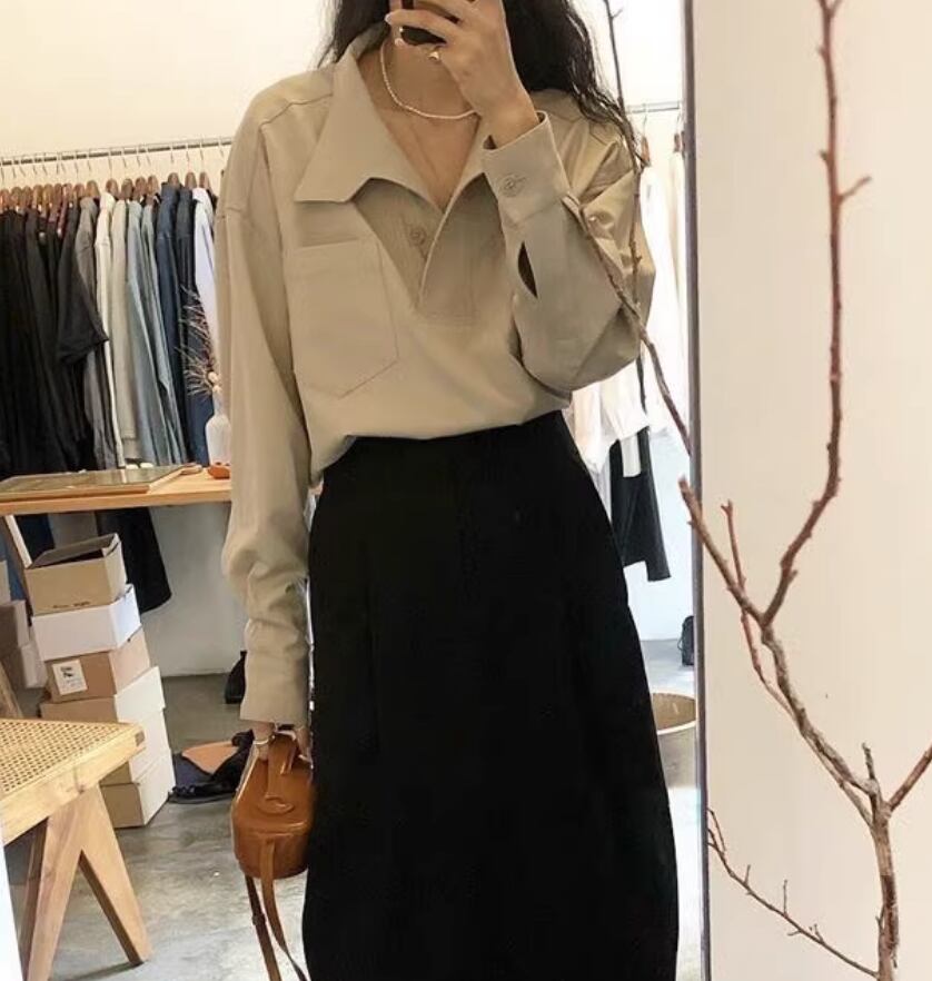 トップス シャツ ブラウス 長袖 かわいい 大人可愛い きれいめ シンプル カジュアル 上品 おしゃれ かっこいい レトロ こなれ感 ラフ ガーリー ルーズ 個性的 クール モード系 エレガント 主役級 存在感 抜け感 ヴィンテージ ラブリー キュート ゴシック 都会的 ラグジュアリー クラシカル ナチュラル 春 秋 OL 学生 デート お出かけ イベント 旅行 女子会 休日 ショッピング カフェ コーデ 楽ちん 普段使い 着回し モテ インスタ映え フリーサイズ 黒 ブラック アプリコット