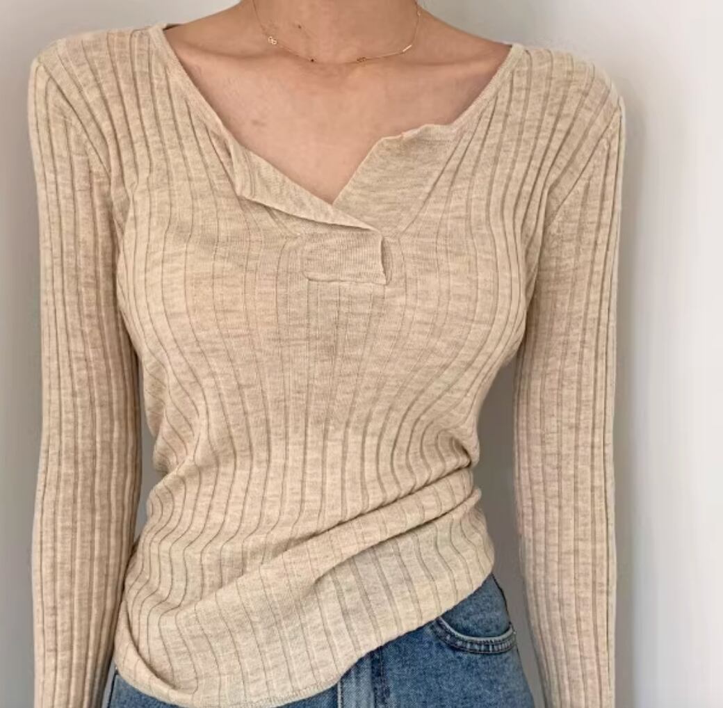 魅力的なシックなニットをご紹介します!このトップスは、タイトなシルエットで細身に見せてくれるのが特徴です。着こなし次第で、かわいらしさや大人っぽさを演出することができます。上品さと個性的さを兼ね備えており、存在感があります。
