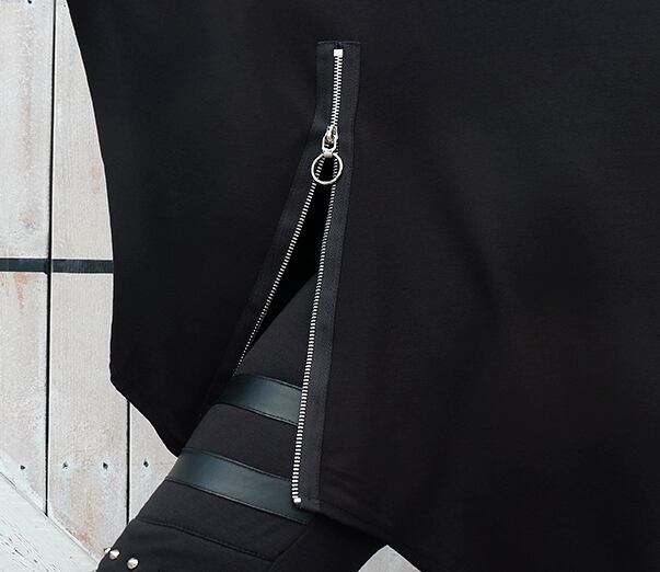 裾にもファスナーのスリットがついていて、可愛いだけでなく、大人っぽいクールなスタイルにもマッチします。