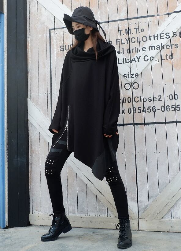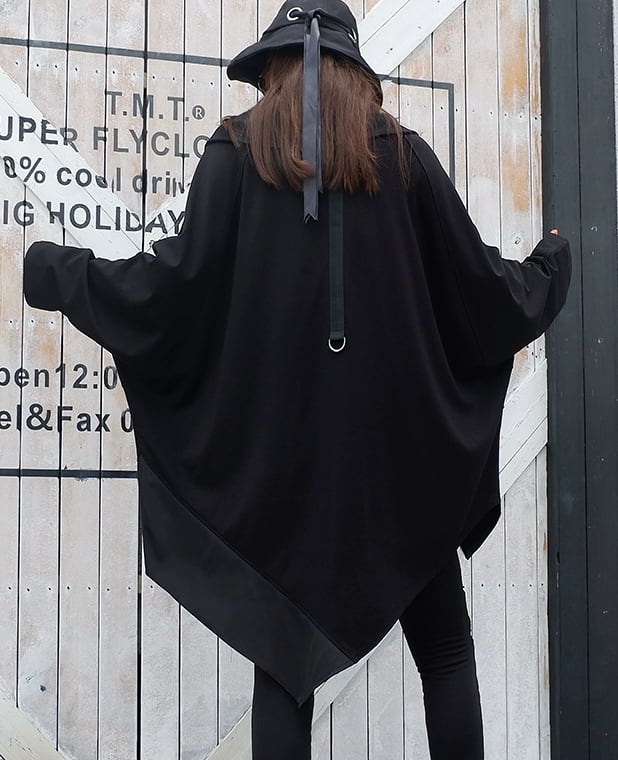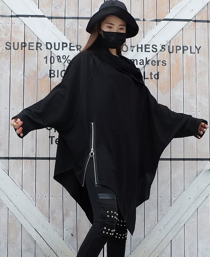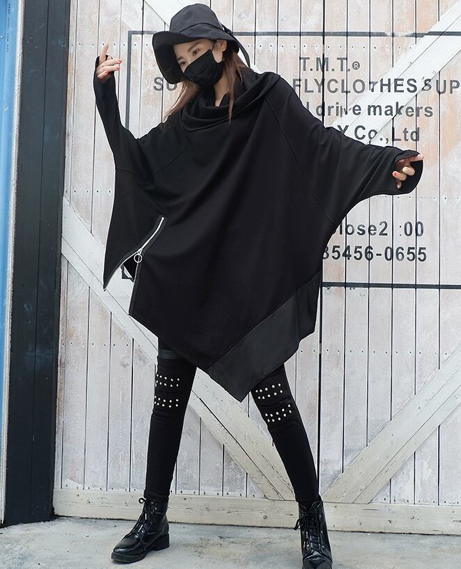 個性的 トップス アウター プルオーバー ケープ風 ポンチョ 袖あり 長袖 襟なし スリット ファスナー アシンメトリー 大人可愛い カジュアル 大人 おしゃれ お洒落 かっこいい レトロ 大人女子 こなれ感 ラフ クール モード系 モダン 主役級 存在感 抜け感 無地 秋 冬 10代 20代 30代 40代 レディース 通勤 学生 通学 お出かけ 休日 アウトドア 旅行 着回し 普段使い 重ね着 暖かい 防寒 トレンド インスタ映え フリーサイズ ビッグサイズ ゆったり ゆる 黒 ブラック モノトーン