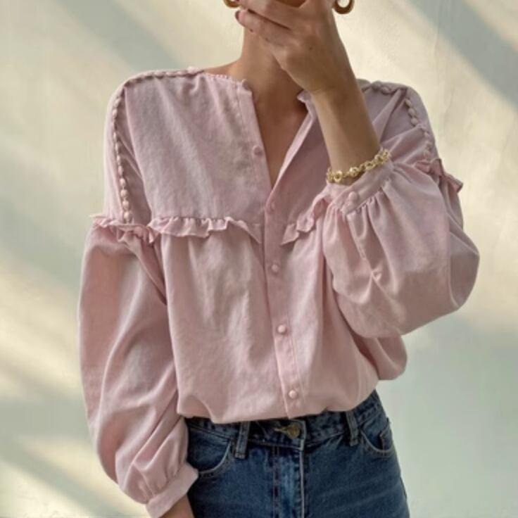 トップス シャツ ブラウス 長袖 かわいい 大人可愛い きれいめ シンプル カジュアル 上品 おしゃれ かっこいい レトロ こなれ感 ラフ ガーリー ルーズ 個性的 クール モード系 エレガント 主役級 存在感 抜け感 ヴィンテージ ラブリー キュート ゴシック 都会的 ラグジュアリー クラシカル ナチュラル 春 秋 OL 学生 デート お出かけ イベント 旅行 女子会 休日 ショッピング カフェ コーデ 楽ちん 普段使い 着回し モテ インスタ映え フリーサイズ ピンク アプリコット