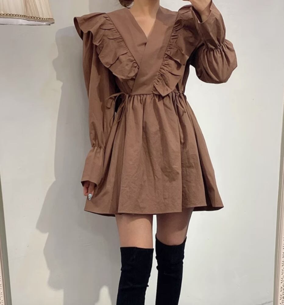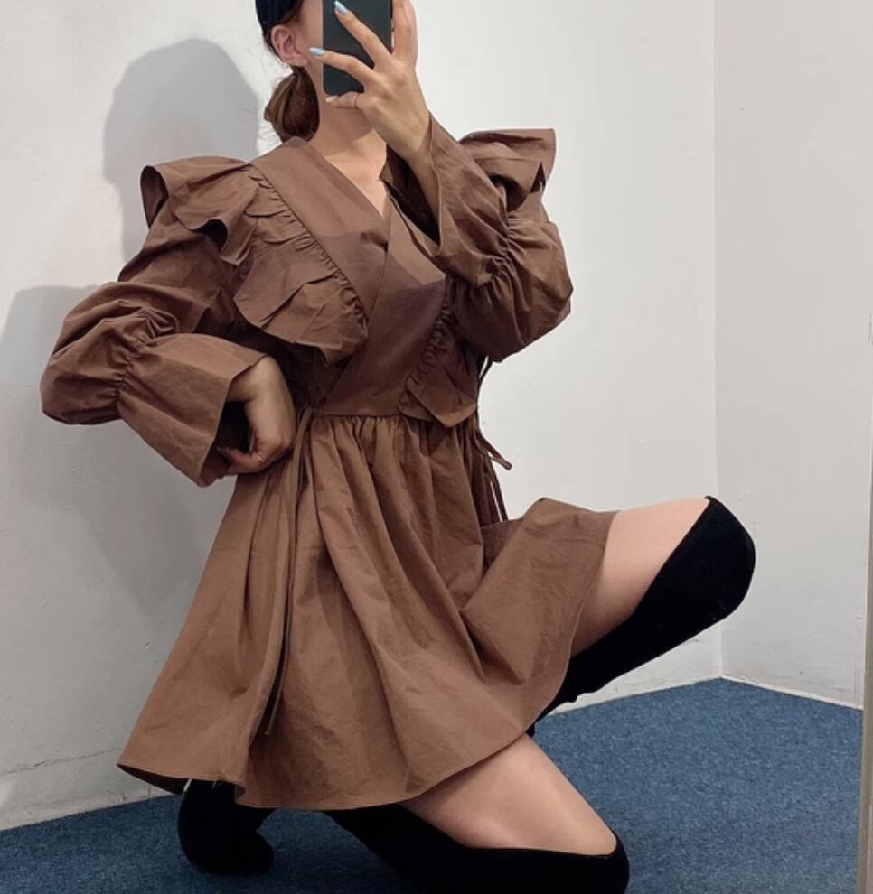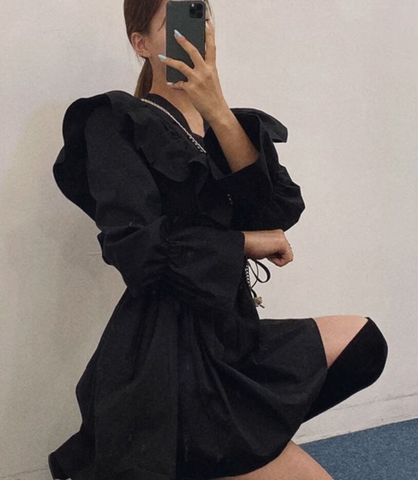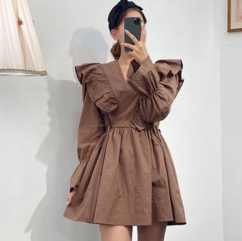 ワンピース ショート 膝上 長袖 かわいい 大人可愛い きれいめ シンプル カジュアル 上品 おしゃれ かっこいい レトロ こなれ感 ラフ ガーリー ルーズ 個性的 クール モード系 エレガント 主役級 存在感 抜け感 ヴィンテージ ラブリー キュート ゴシック 都会的 ラグジュアリー クラシカル ナチュラル 春 秋 OL 学生 デート お出かけ イベント 旅行 女子会 休日 ショッピング カフェ コーデ 楽ちん 普段使い 着回し モテ インスタ映え S M ホワイト ブラック ブラウン