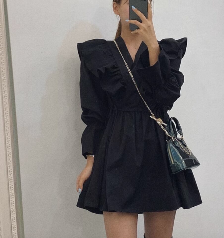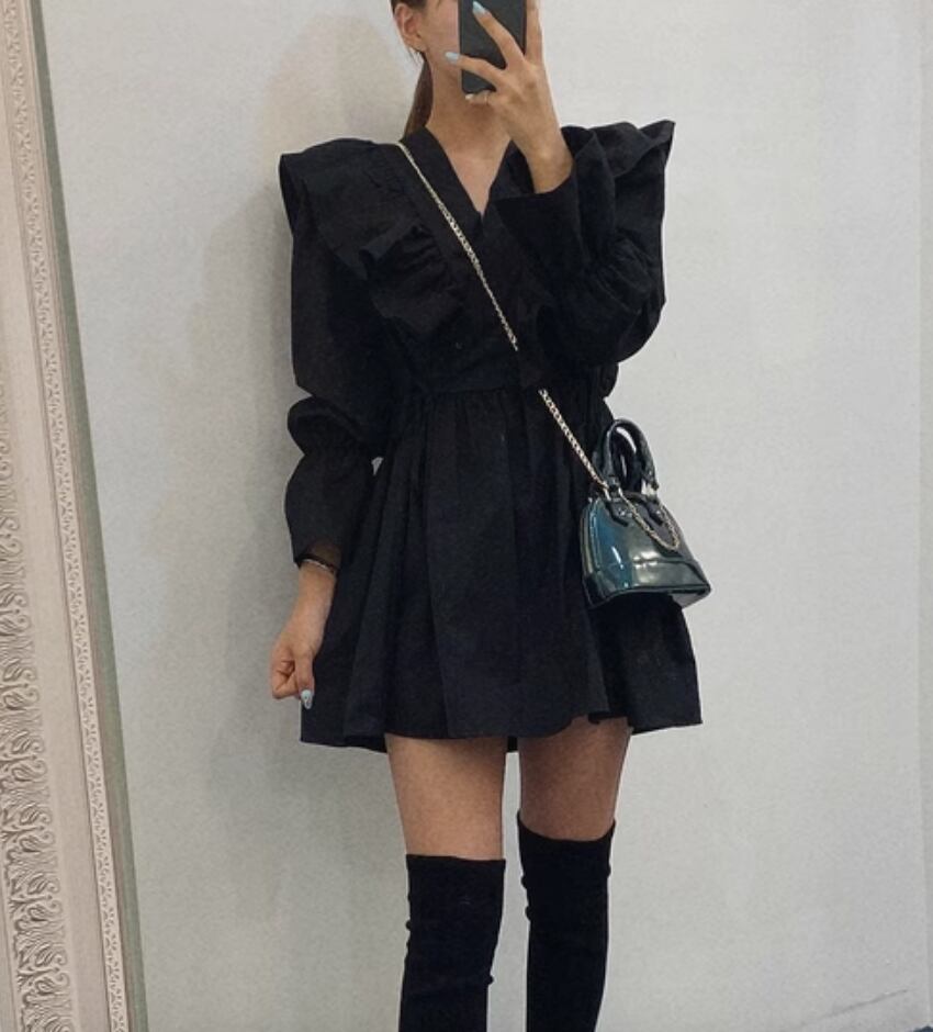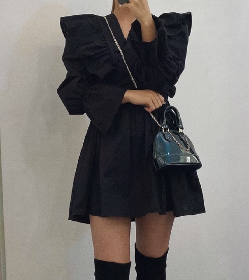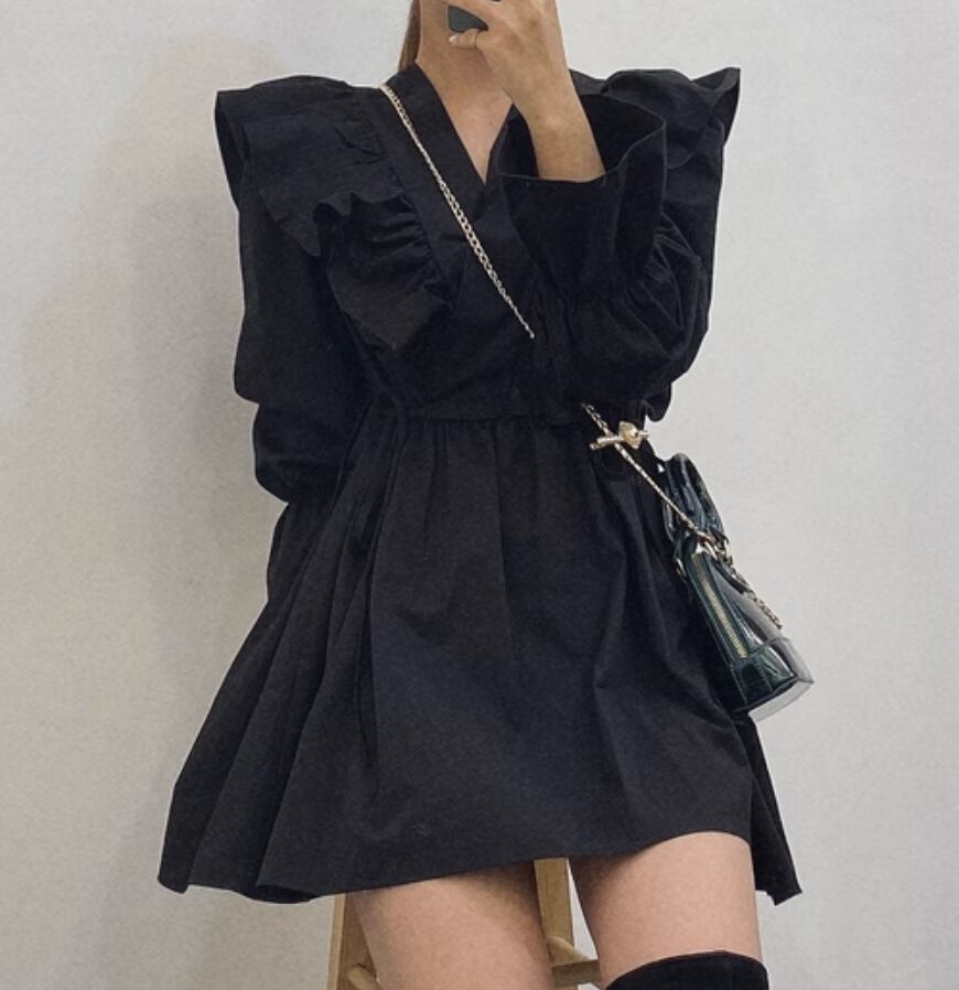 ワンピース ショート 膝上 長袖 かわいい 大人可愛い きれいめ シンプル カジュアル 上品 おしゃれ かっこいい レトロ こなれ感 ラフ ガーリー ルーズ 個性的 クール モード系 エレガント 主役級 存在感 抜け感 ヴィンテージ ラブリー キュート ゴシック 都会的 ラグジュアリー クラシカル ナチュラル 春 秋 OL 学生 デート お出かけ イベント 旅行 女子会 休日 ショッピング カフェ コーデ 楽ちん 普段使い 着回し モテ インスタ映え S M ホワイト ブラック ブラウン